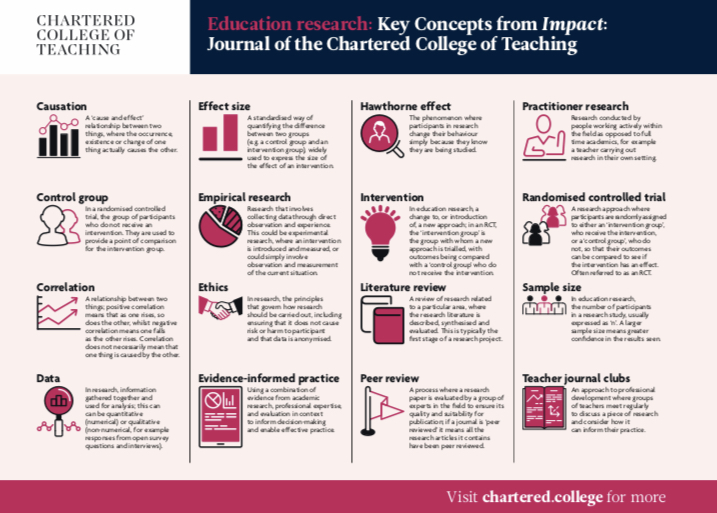What do we mean by "evidence-informed practice"? Key terms used in education research explained in this free poster by The Chartered College of Teaching. Read about it here.