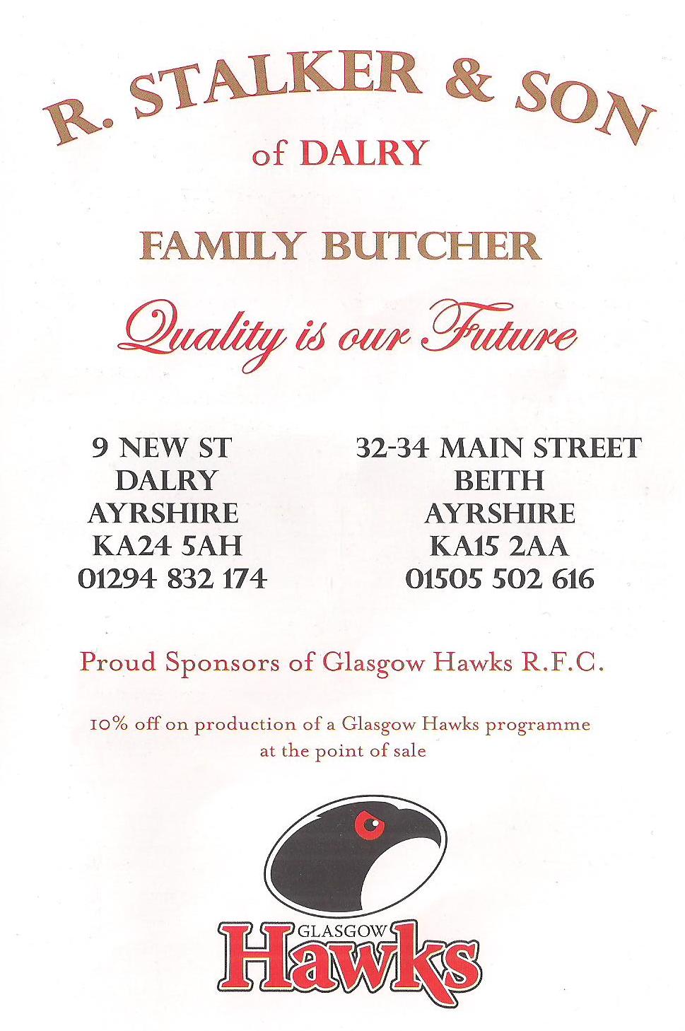 Thanks also to all our generous sponsors for their valued support of Glasgow Hawks.