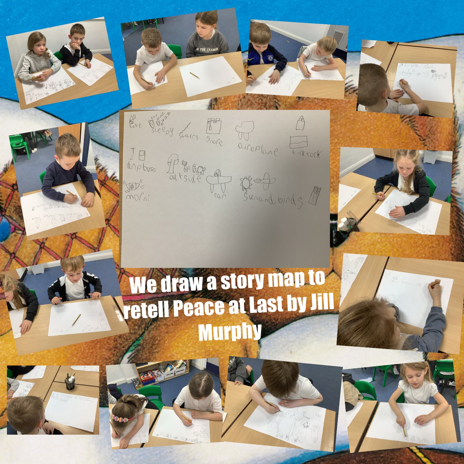 We read the story Peace at Last by Jill Murphy and used this to write a narrative. We enjoying drawing a story map to retell the story first.