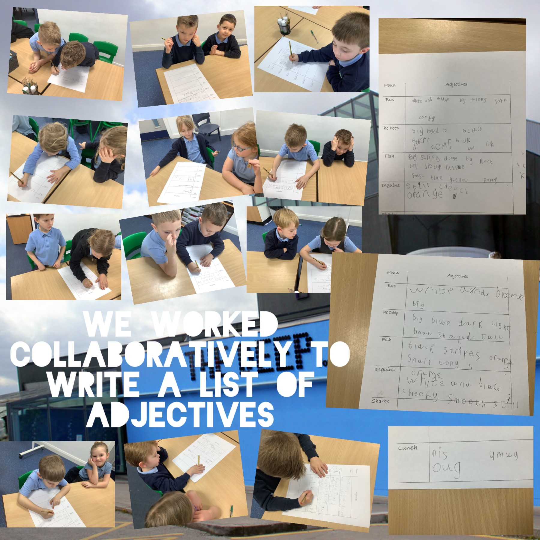 We wrote a recount of our trip to The Deep. We gathered the nouns and adjectives we would need for our writing and we started to look at time openers to give our recount structure.