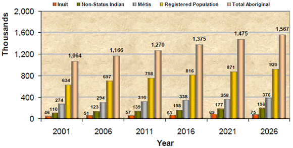 The aboriginal people population will increase because they have a slightly higher birth rate than the non-aboriginal people. They will have an increase in birth rate and decrease in death rate since there are more children than seniors. The aboriginals will face less problems in 2050, since Canada will need more worker the aboriginals will have a chance and this will decrease their underemployment rate. They will be able to reach higher levels of education due to the fact that more people are choosing to follow their careers. Also since they will be able to get jobs their income rates will increase and they will be able to live better lives.