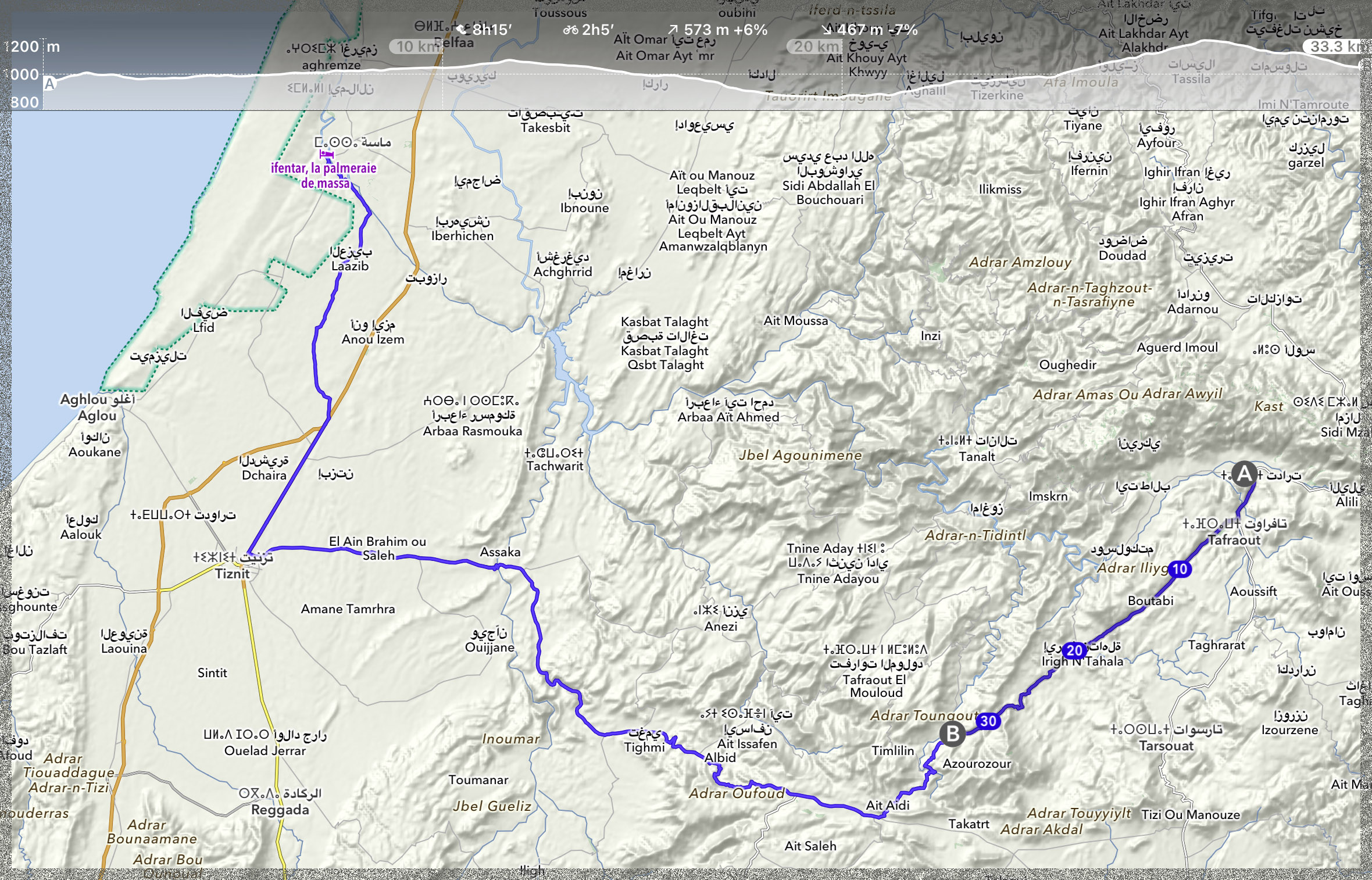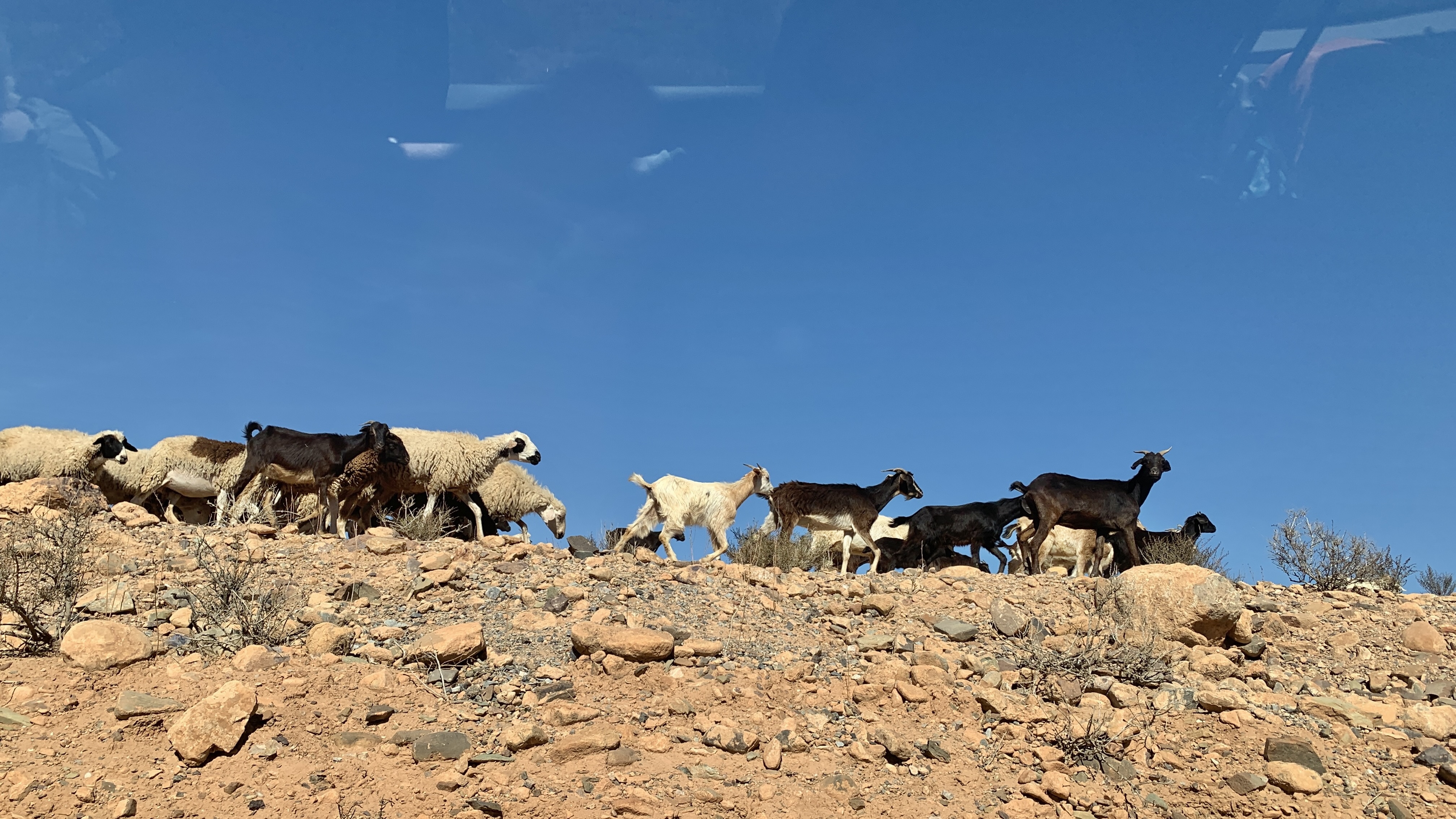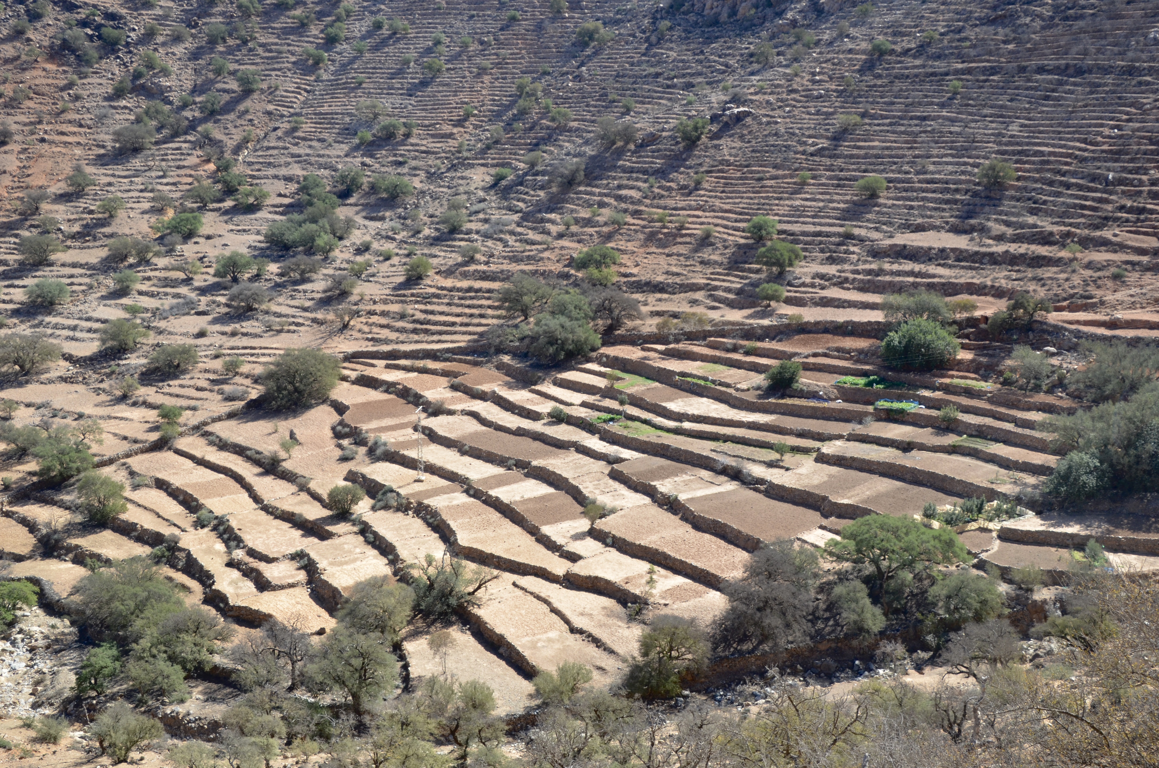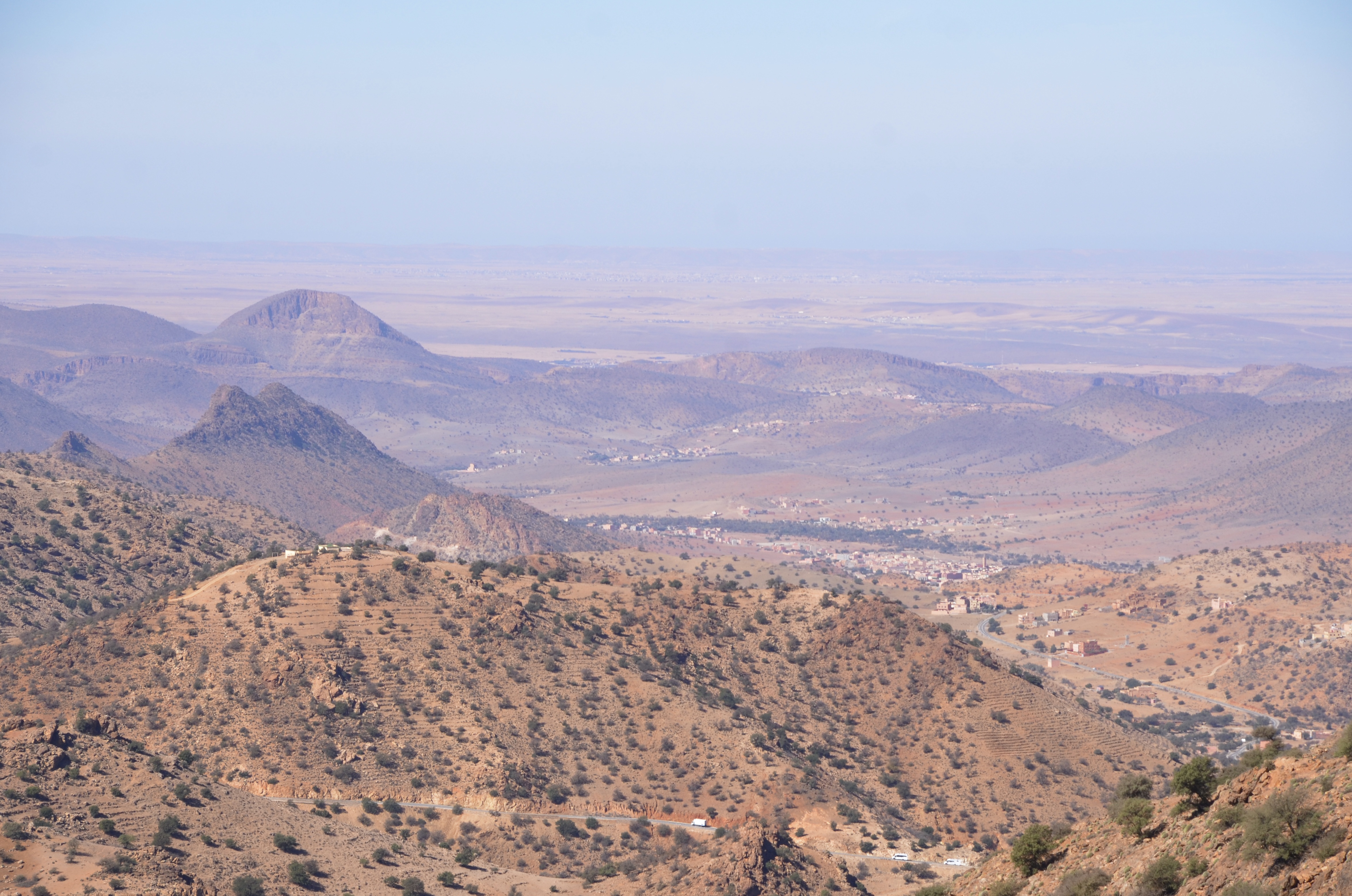 Sur la route aux paysages de moyenne montagne, l’on retrouve les vastes étendues plantées d’arganiers, pas toujours en bonne santé. Beaucoup d’arbres secs hélas.