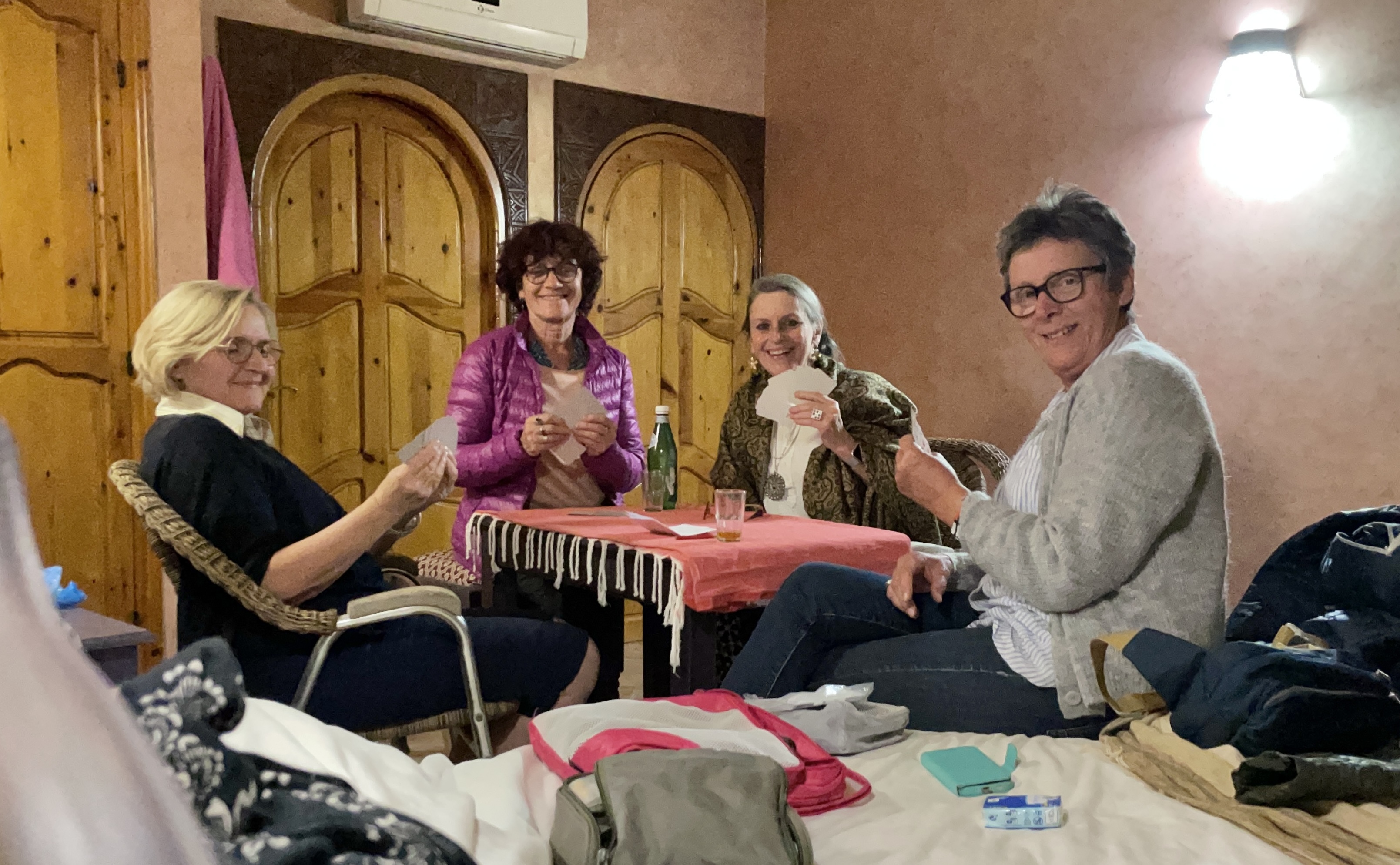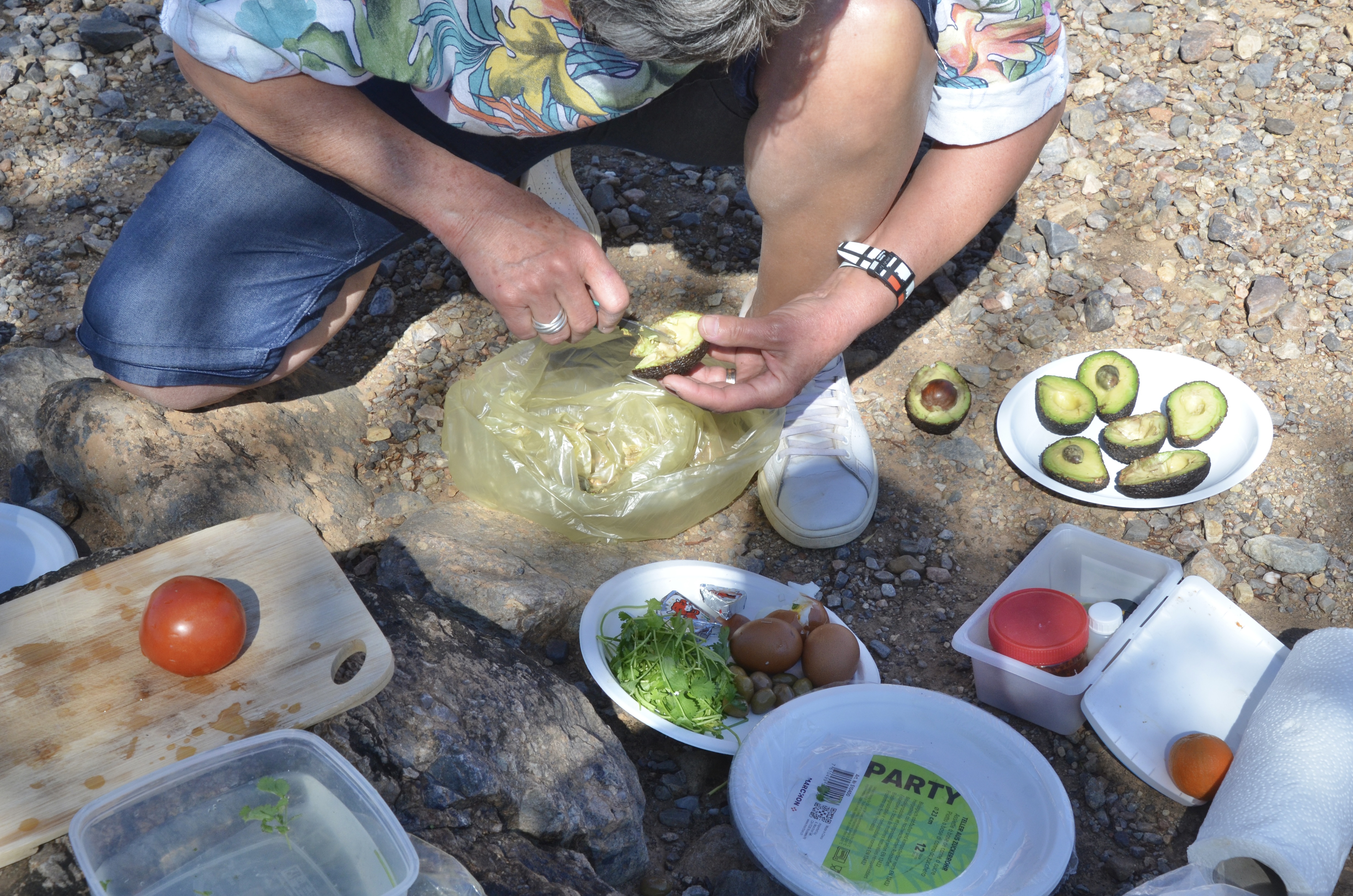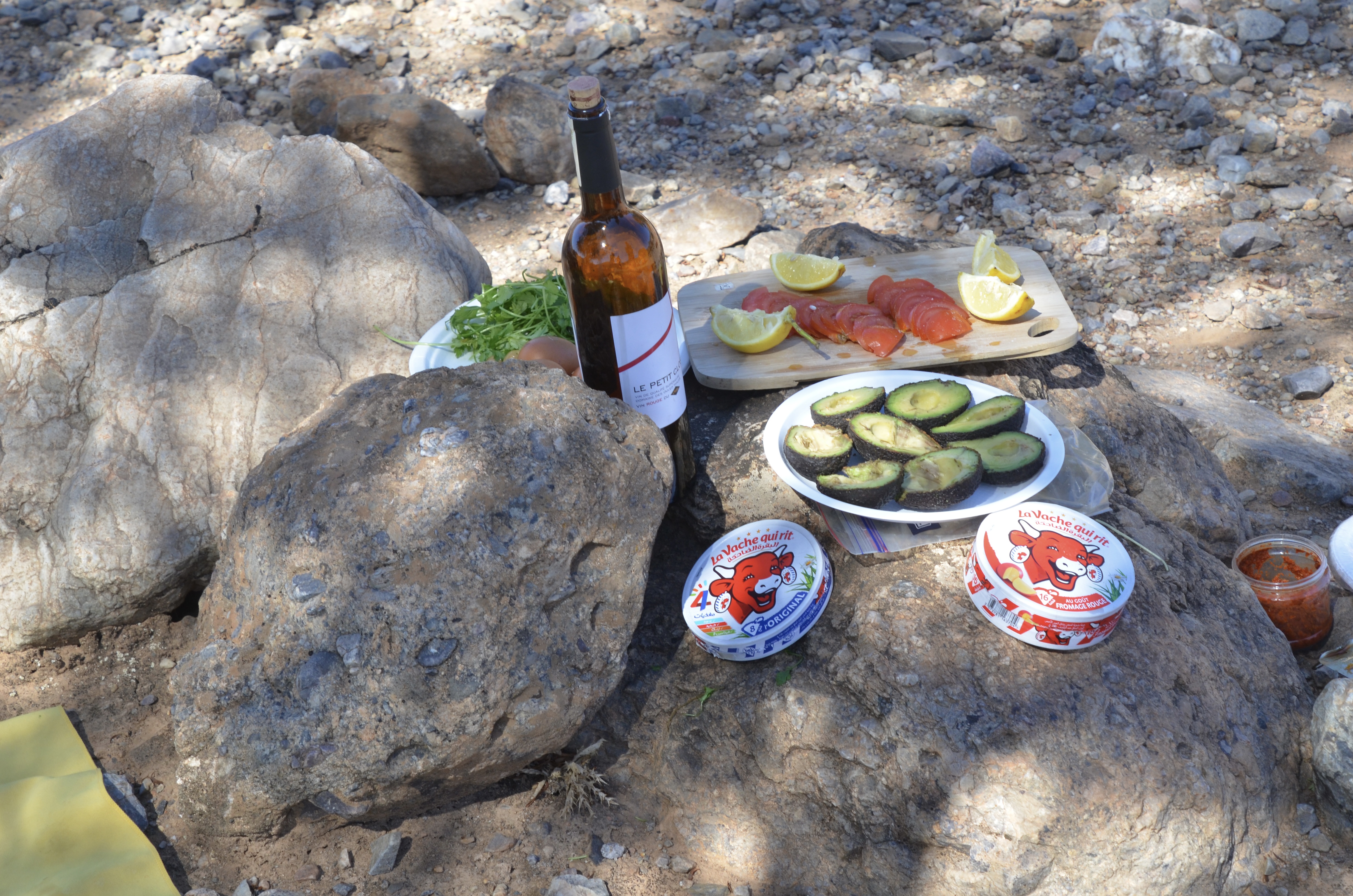 À chacune sa tâche, Evy lave la coriandre, Valentine prépare les avocats et Catherine ouvre la boîte de sardines. À déguster avec un petit reste de vin, nous avons bien géré la cave. Et moi, et moi et moi… j’immortalise tout ce petit monde très affairé.