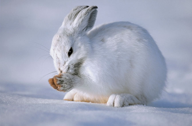 The snowshoe hare has adapted to living in the coniferous forest by changing the color of its fur depending what season it is.