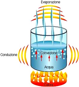 Per Evaporazione si intende il passaggio di un corpo dallo stato liquido allo stato aeriforme. Tale trasformazione avviene con acquisto di calore ed è un processo che avviene solo alla superficie del liquido ed è tanto più rapido quanto maggiore è la temperatura. L'ebollizione avviene solo ad una determinata temperatura detta appunto "temperatura di ebollizione".
