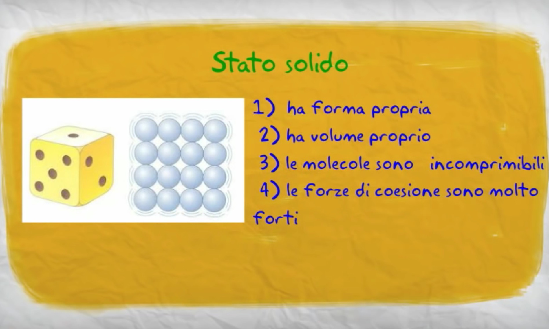 - Stato solido (GHIACCIO) se la temperatura è al di sotto di 0° C.