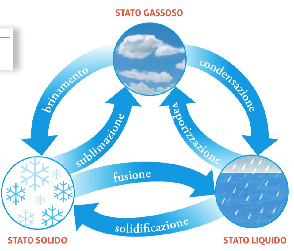 -Stato gassoso se la temperatura è superiore a 100° C (cioè dopo che è avvenuta l’ebollizione).
