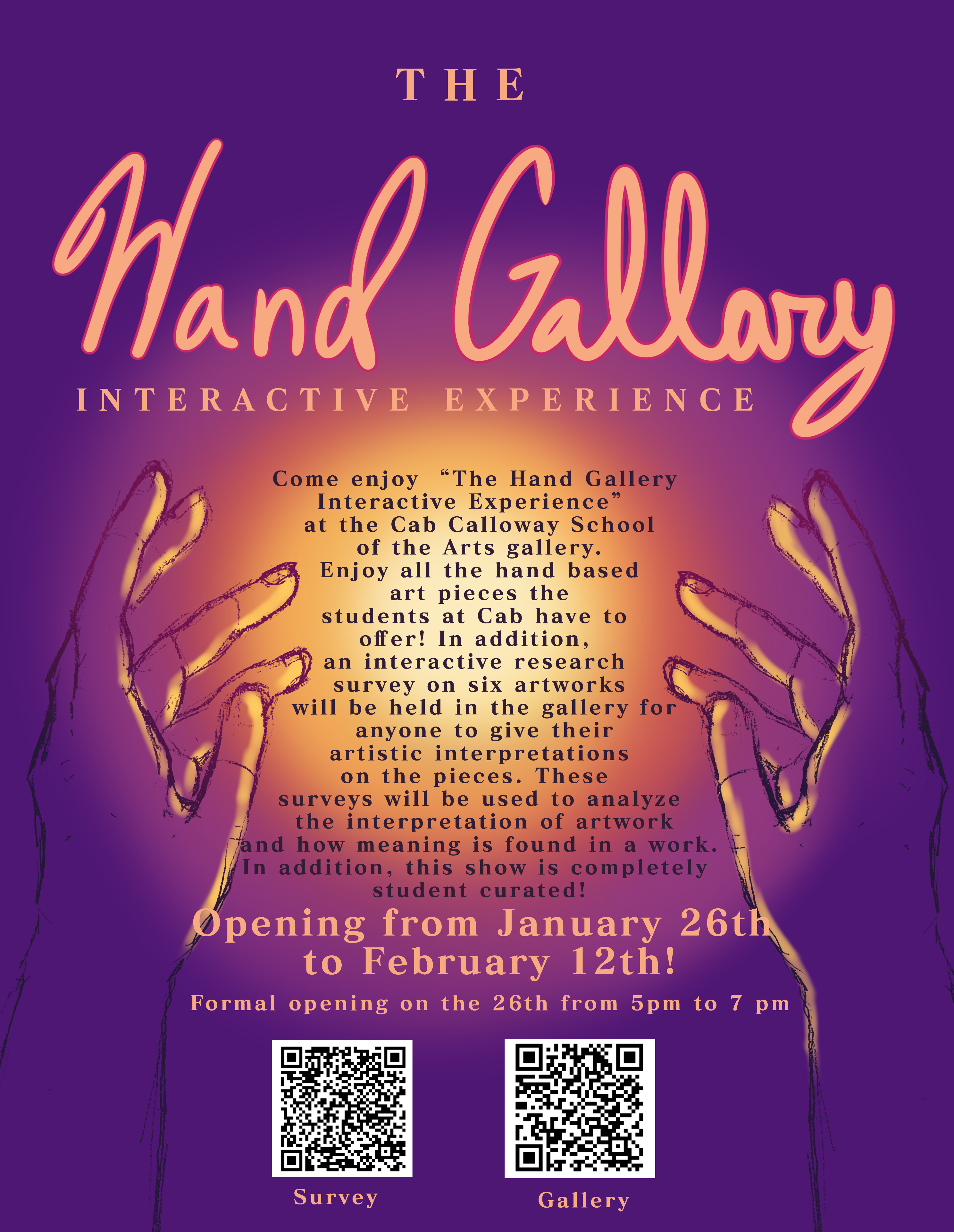 - Hand Gallery Interactive Experience will feature a collection of hand artworks from high school students of all grades.