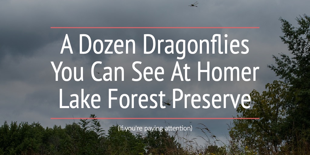 - A(nother) Half Dozen Dragonflies You Could See at Homer Lake Forest Preserve is a follow-up to this guide with another six species a little more challenging to observe but worth the effort if you're into it!