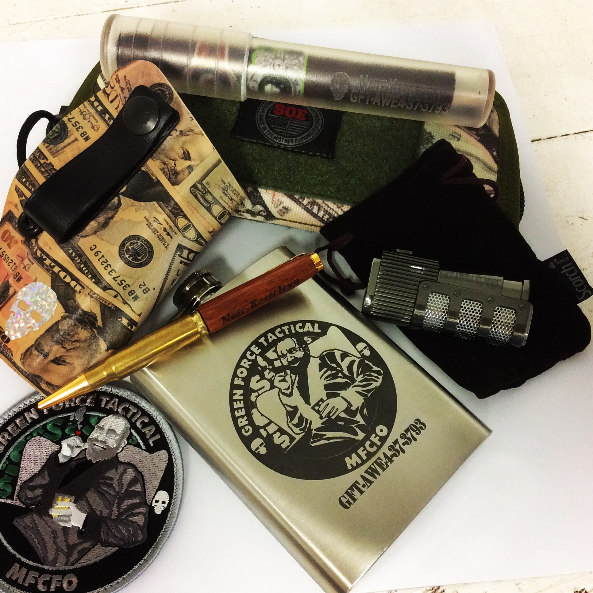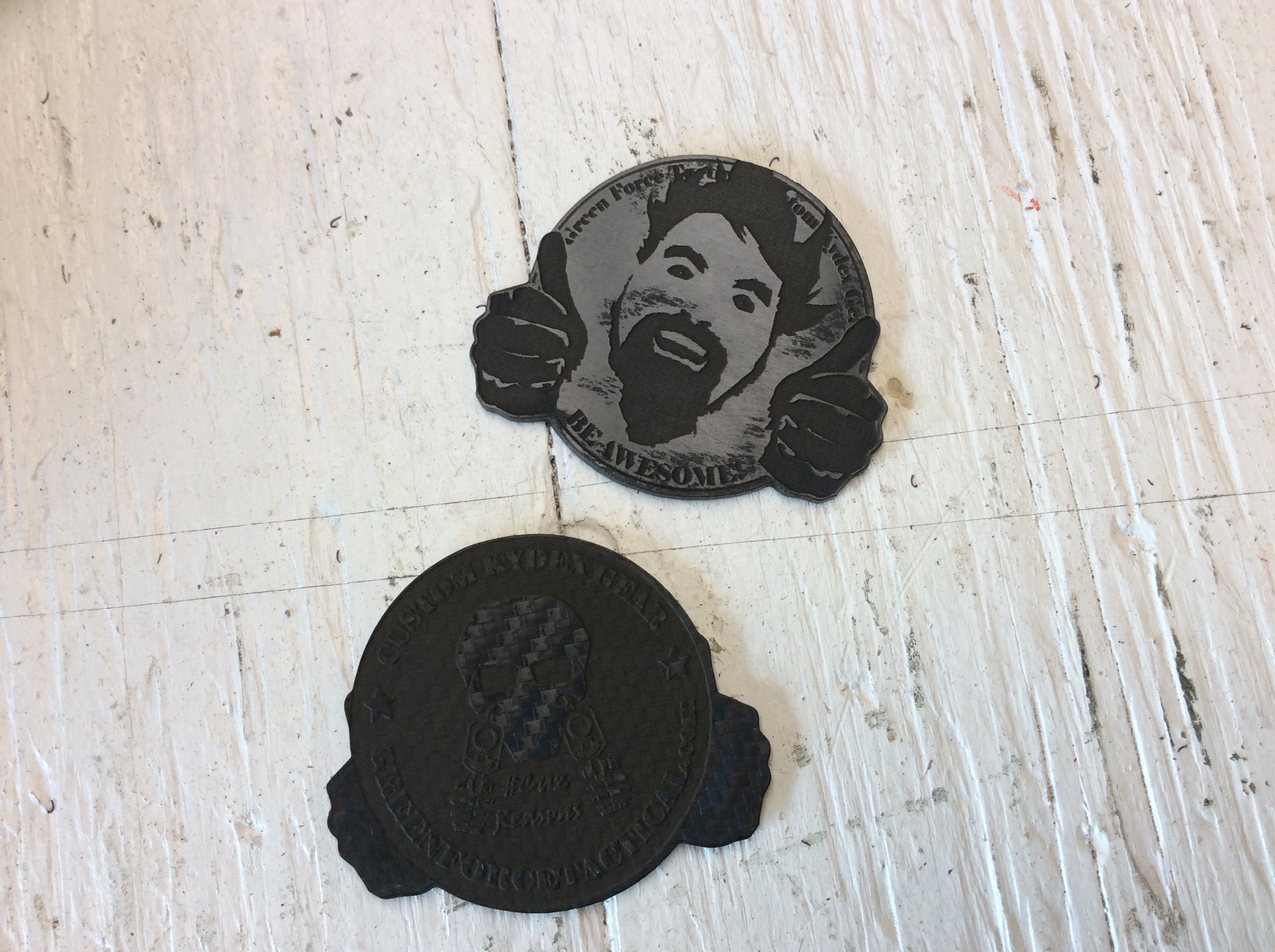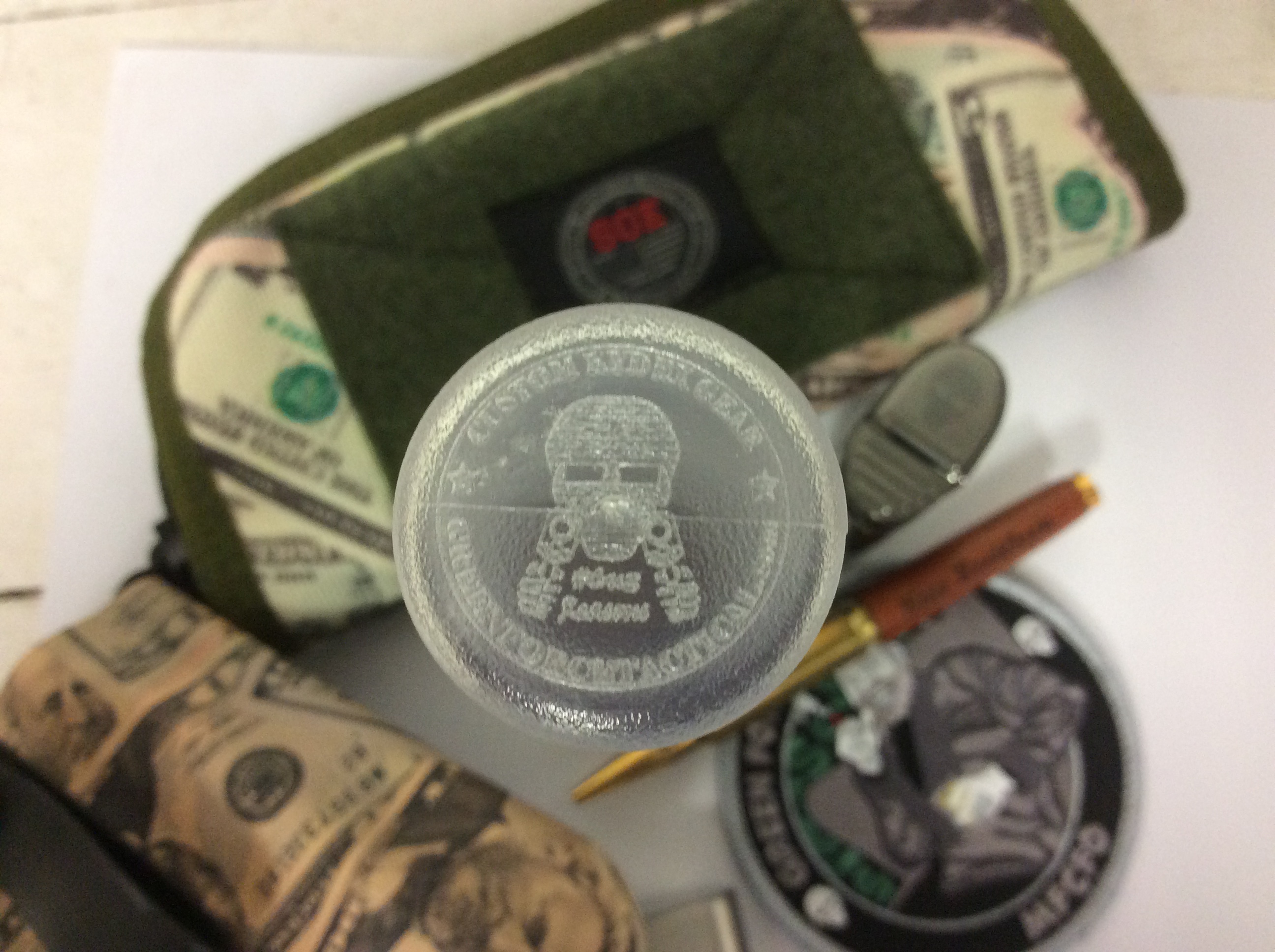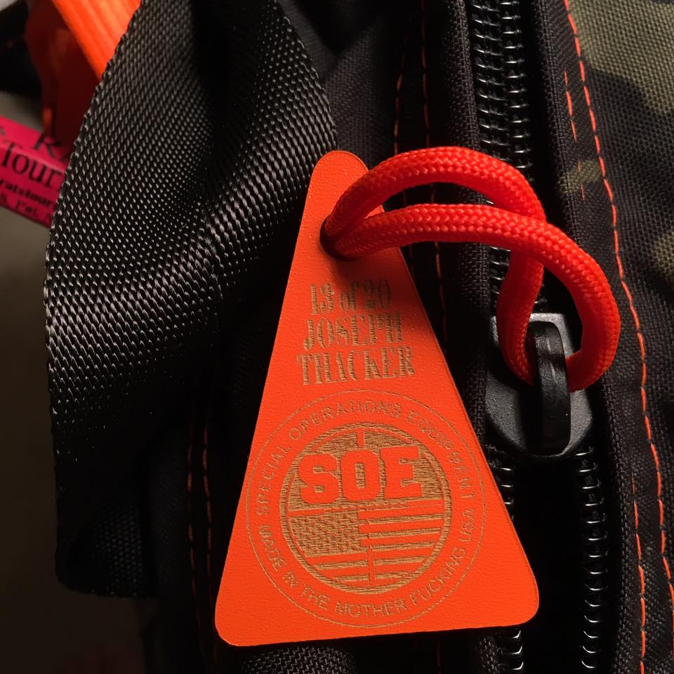 This one was Cinder's mail bag. The bag is a small tool bag by Special Operations Equipment. The art is from DeGaine Designs. Custom engraving is by ALEO Laser Works.