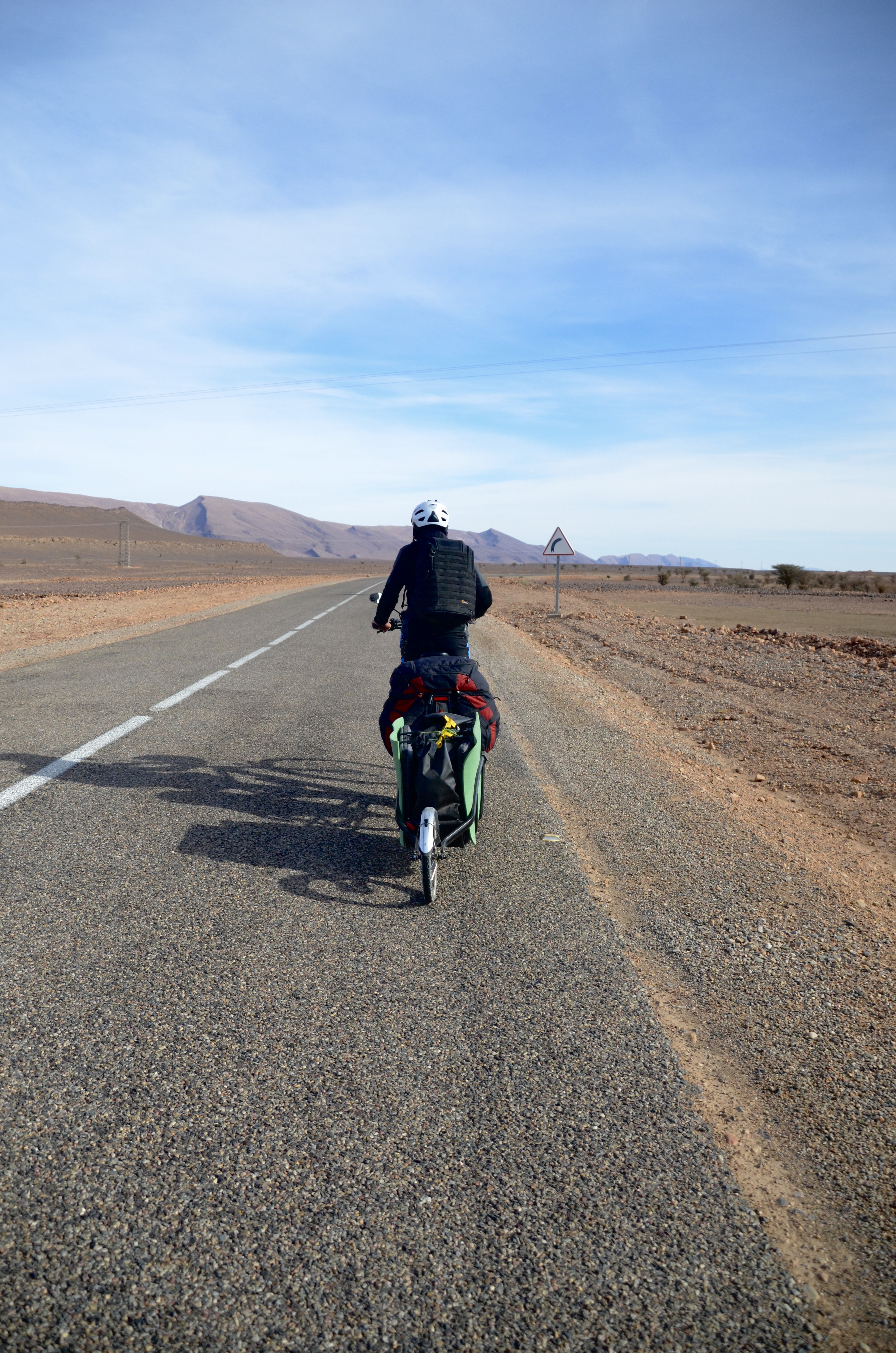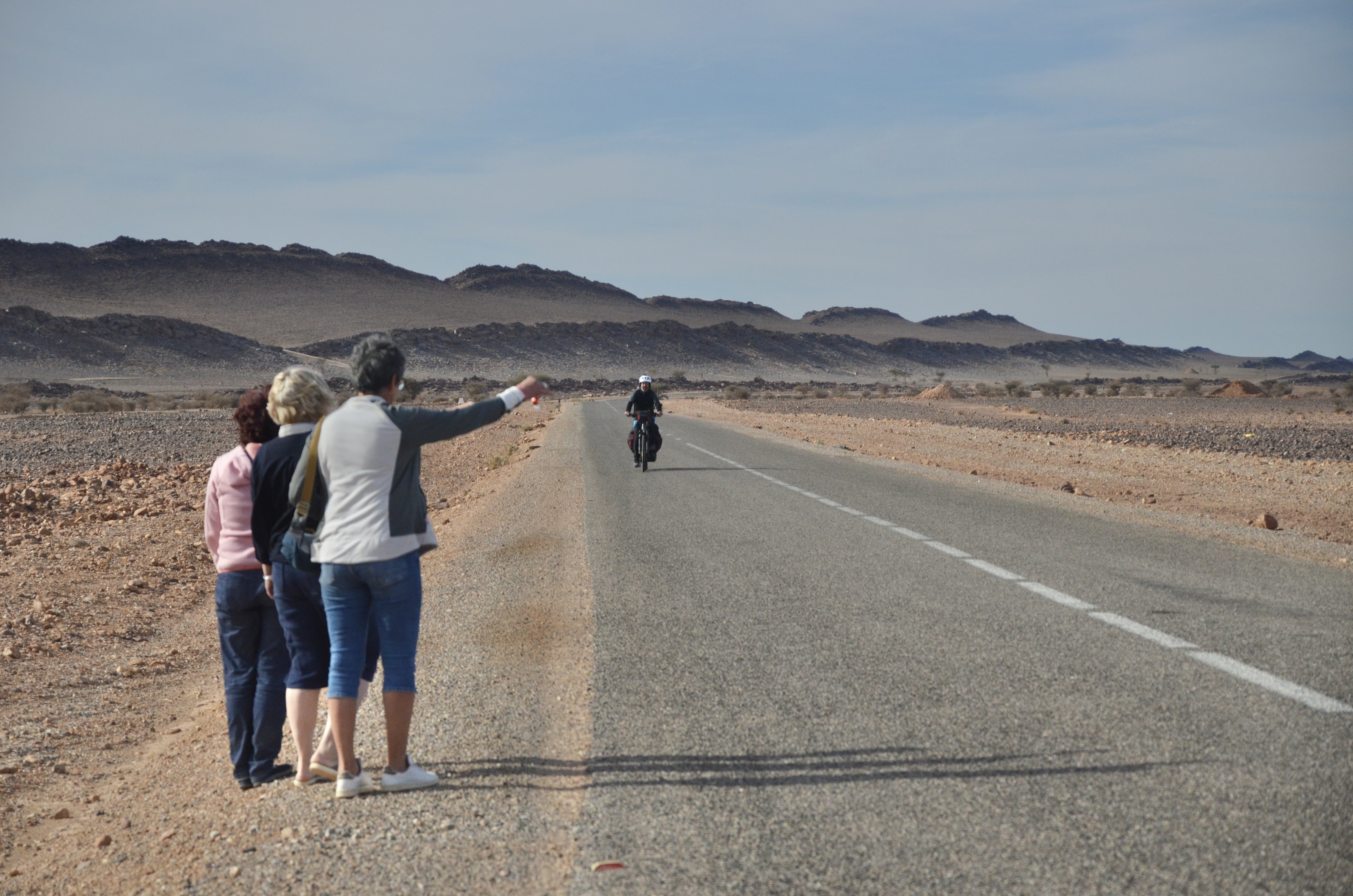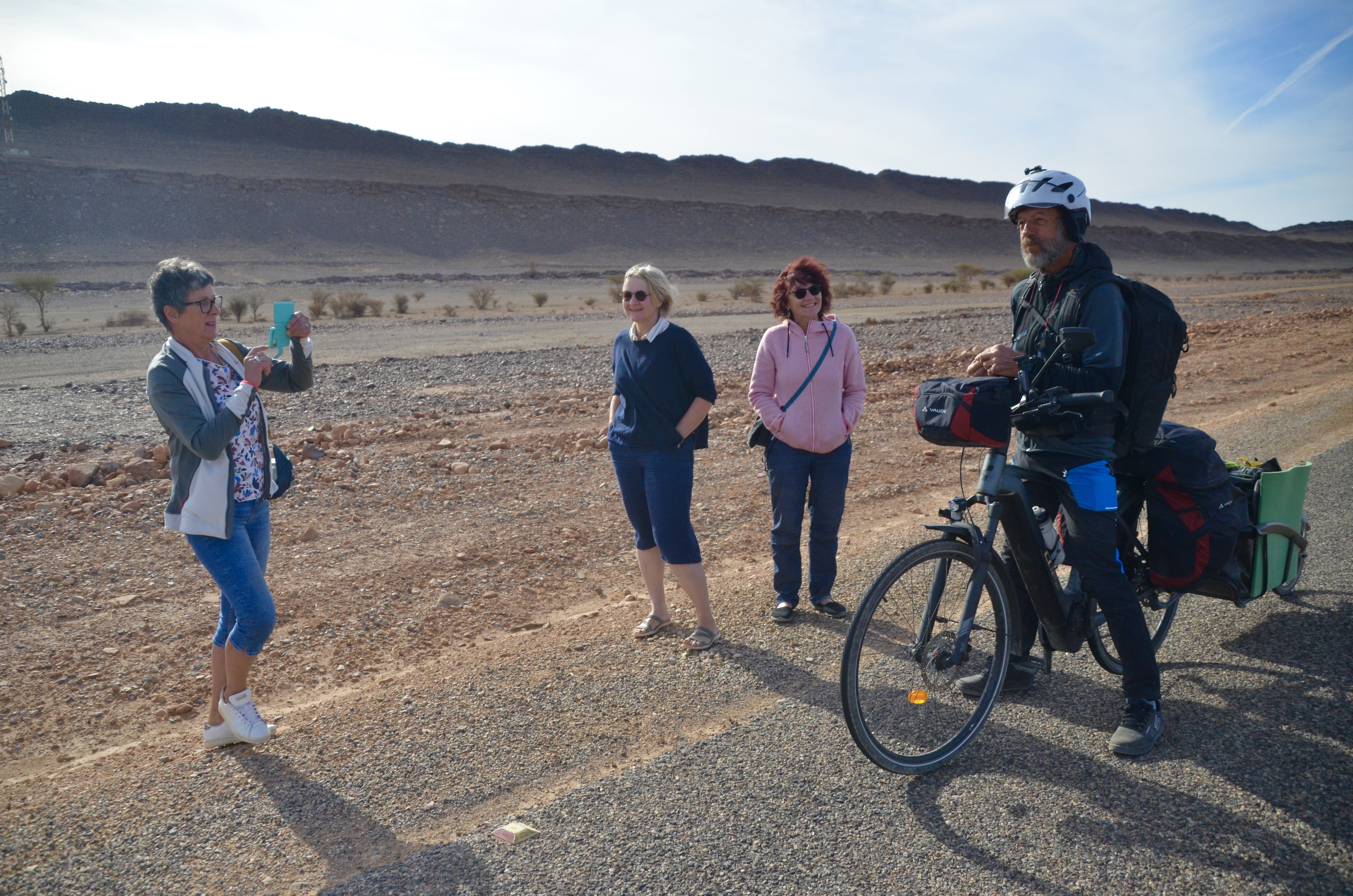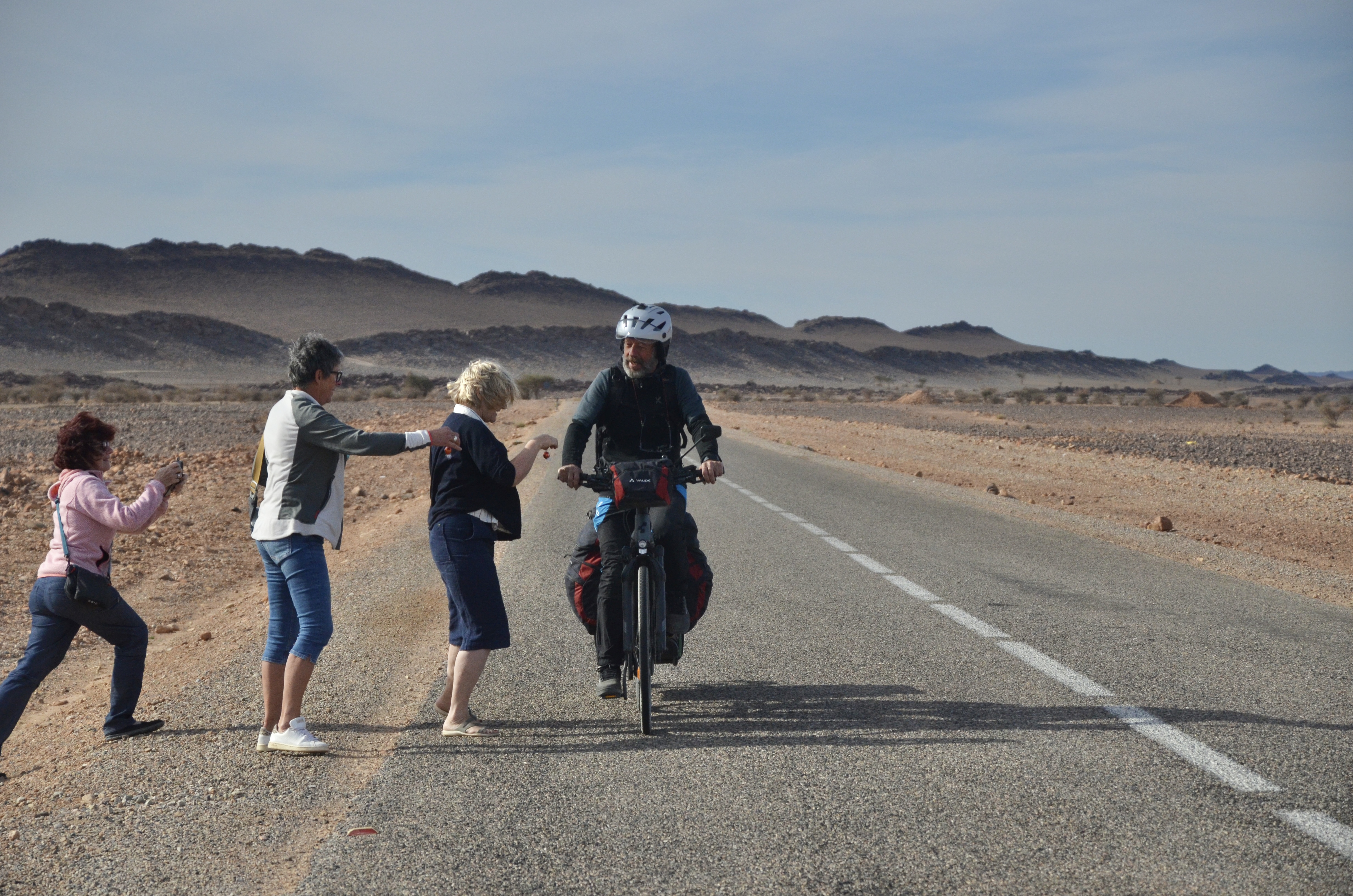 Patrick, le marin d’Annecy, pédale depuis Marrakech jusqu’au Sud et retour. Sa voiture l’attendant bien sagement au camping de la ville rouge. Bien surpris de son fan’s club et de la distribution de boules Lindor. Le plein d’énergie et c’est reparti pour Akka, vent de face et soleil de côté.