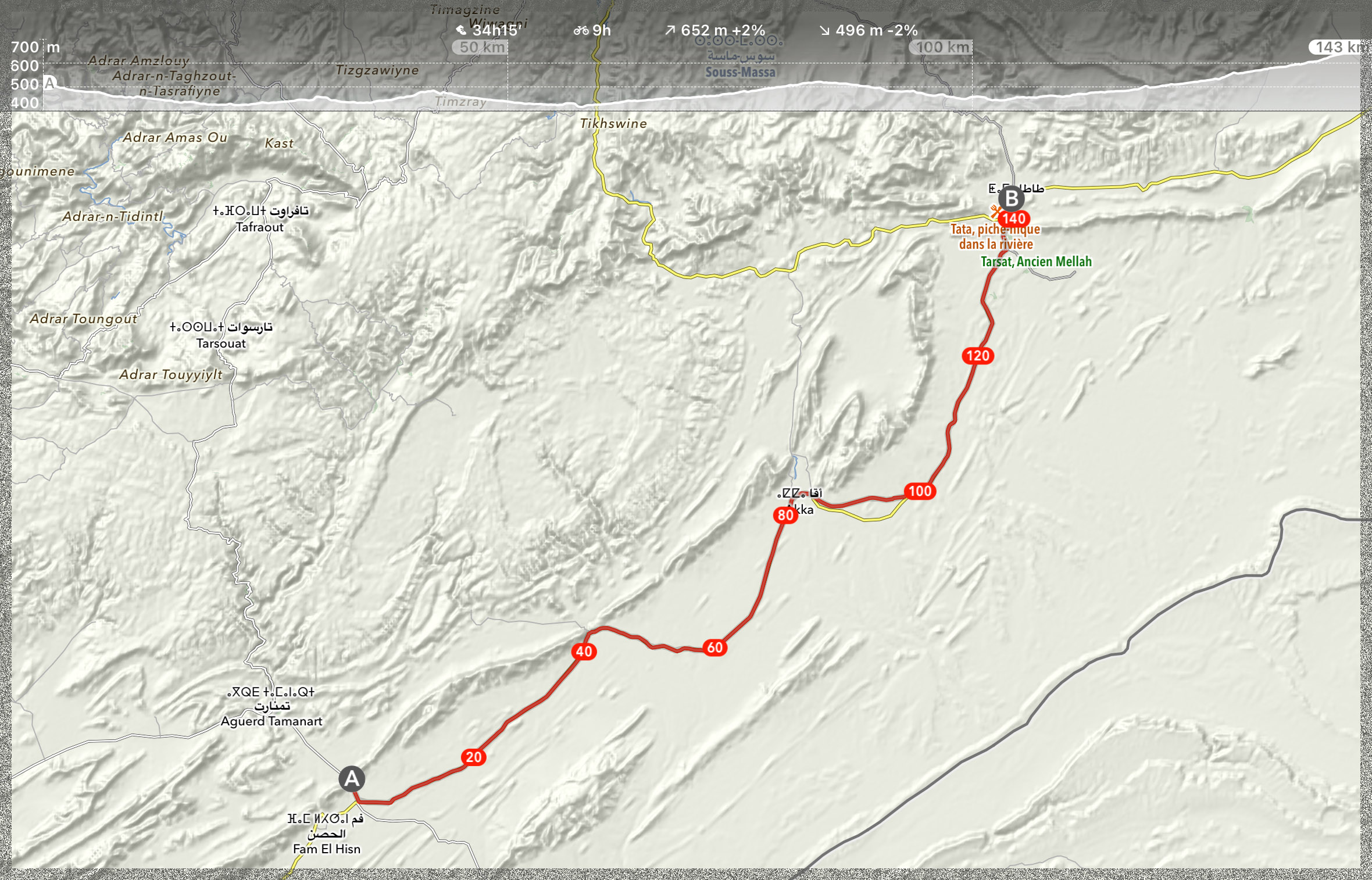 Ci-dessus : 22 km après Icht, ravitaillement !!