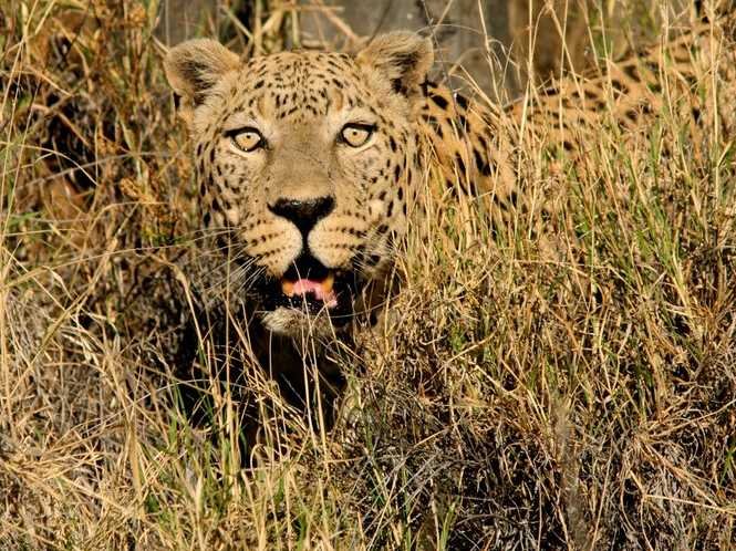The leopard's spotted coats, also known as rosette, helps to camouflage them in grass and tall brush while they hunt.