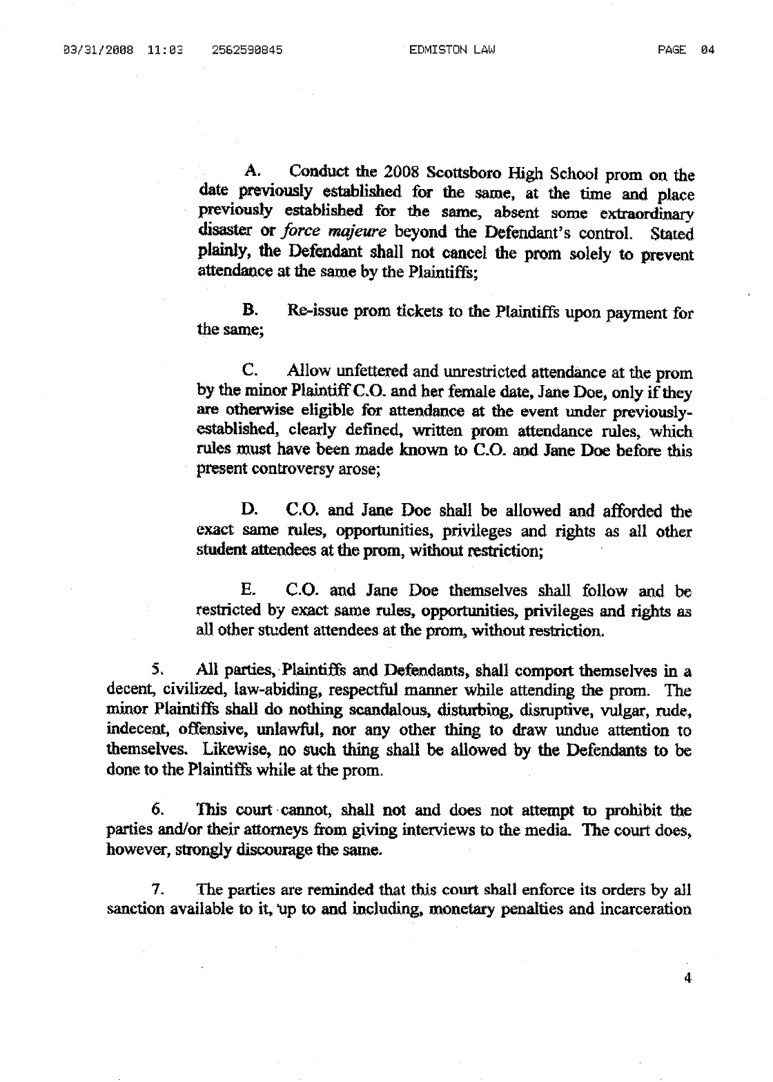 Amendment Broken: This case breaks the first amendment that states,”Congress shall make no law...abridging the freedom of speech, or of the press; or the right of the people peaceably to assemble, and to petition the government for a redress of grievances.” This means that in this case it is unjust for them to ban Cynthia Stewart from her school prom when she did nothing wrong; she asked a simple question that could have been answered with yes/no and a specific reason why that broke a rule.