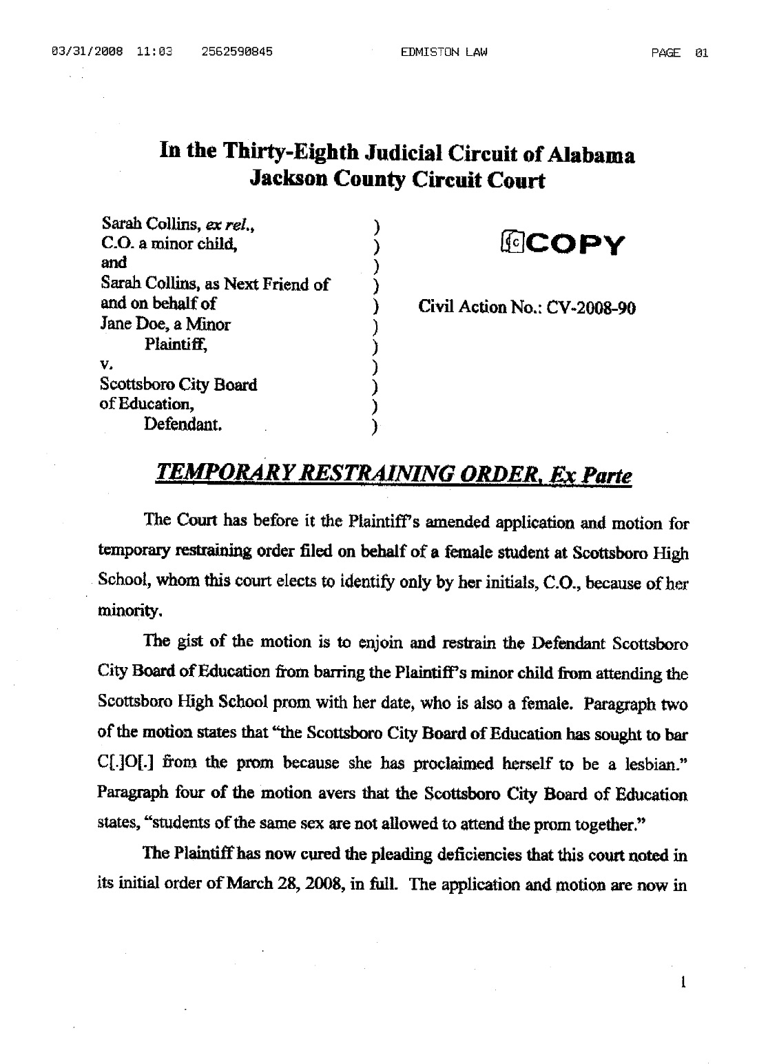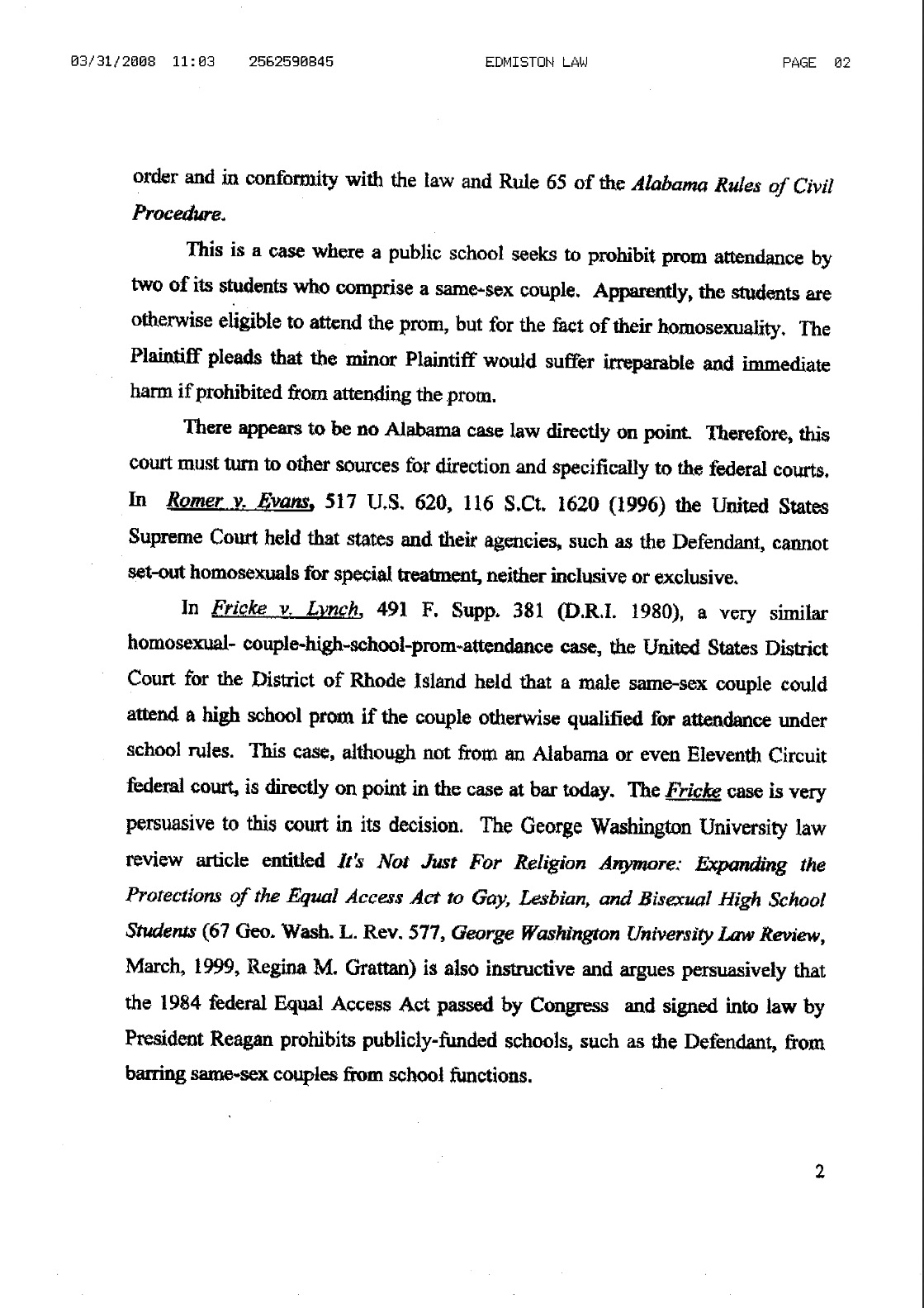 “Russellville, Alabama School Prom Discrimination.” ACLU. aclu.org. 20 Nov. 2009.