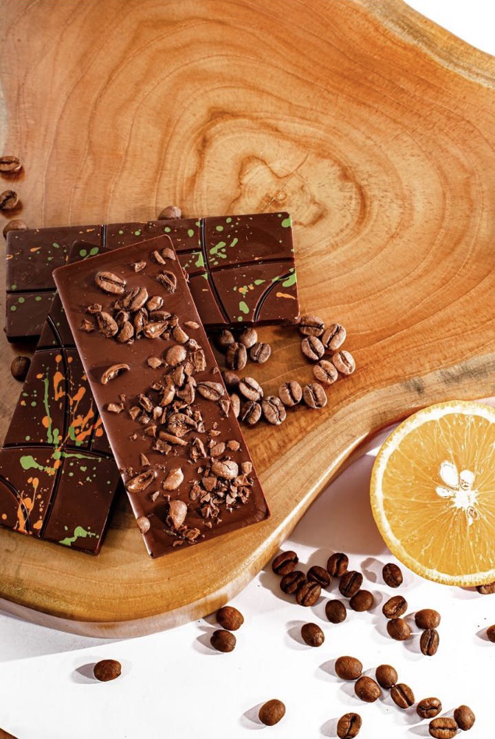 E a empresa também tem trufas, bombons recheados e barras aromatizadas naturalmente.