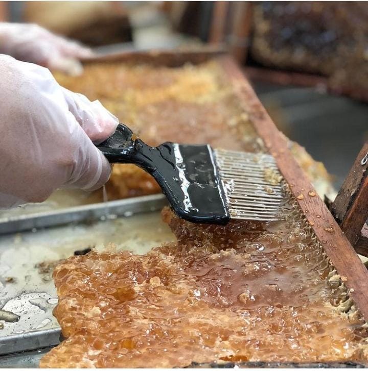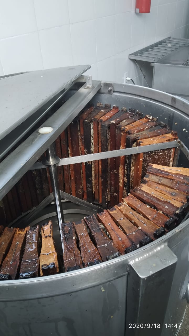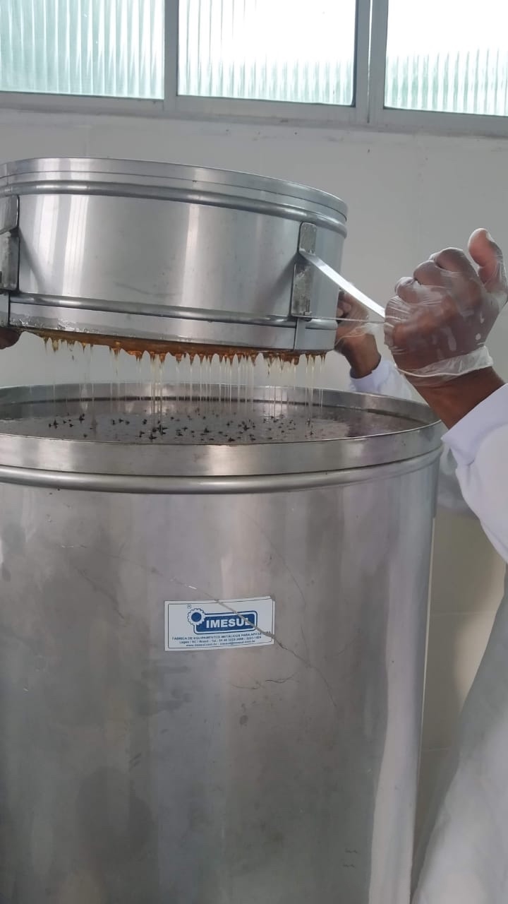 Lá ele é extraído dos favos, processado, decantado, envasado e rotulado.