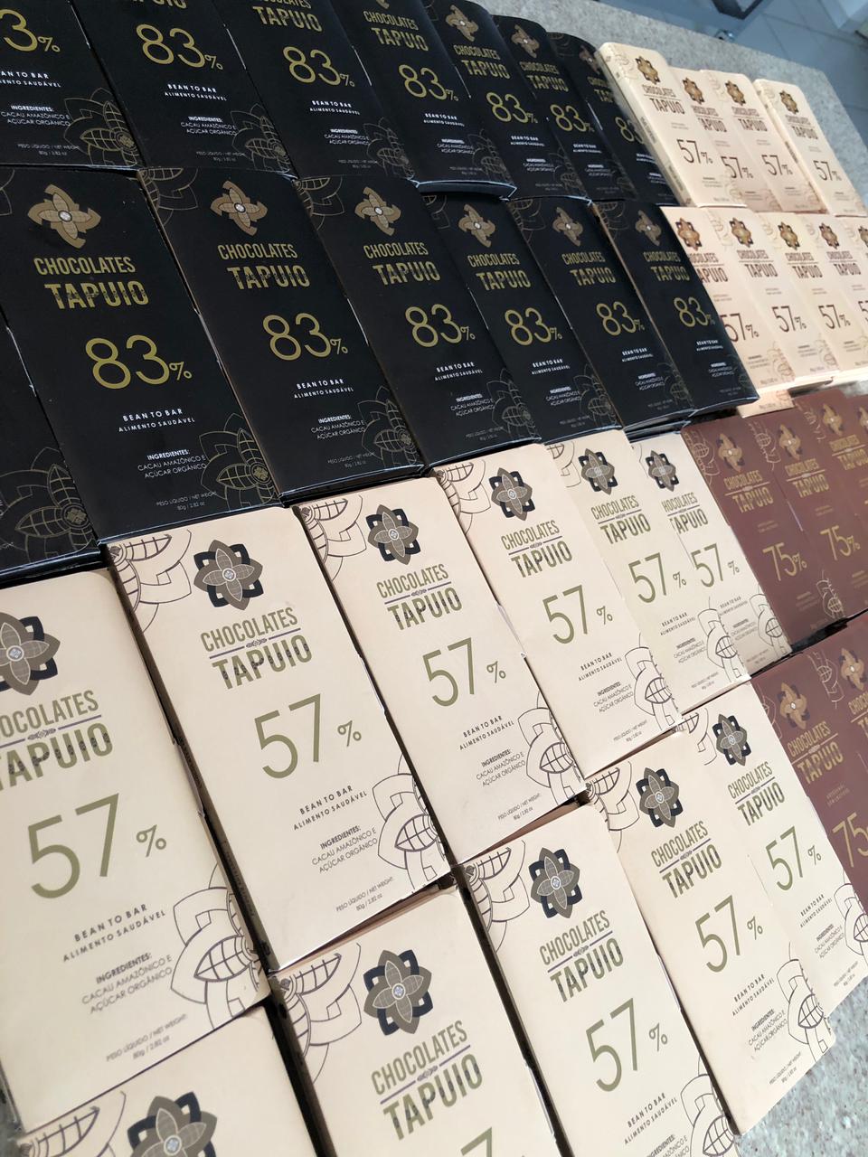 Atualmente, a Chocolates Tapuio trabalha com uma linha vegana e sem glúten de chocolates bean to bar em barra, seu carro-chefe.