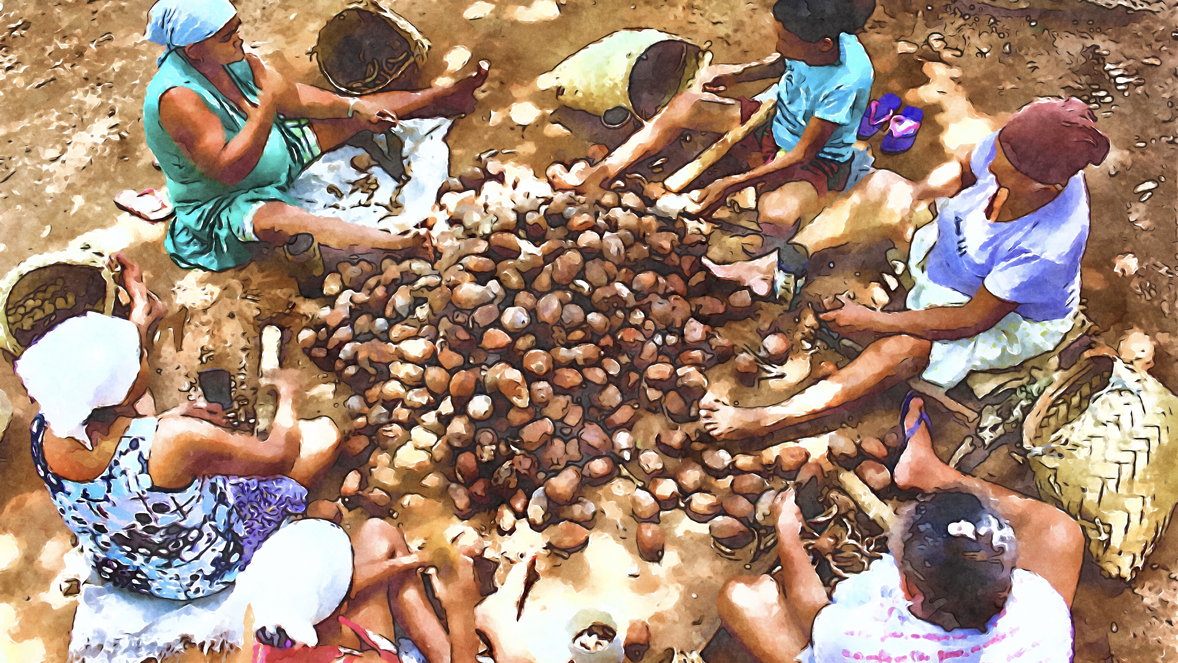 Depois de quebrar o babaçu, as mulheres processam da amêndoa até a casca, sem desperdiçar nada dessa matéria-prima tão especial.