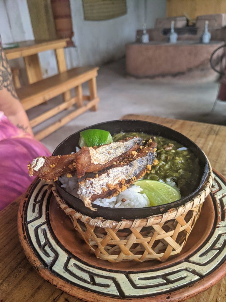 As receitas vão de mingau de banana com leite de coco a tapioca com peixe moqueado - esse é o nome de uma preparação tradicional indígena para peixes e carnes. Os indígenas cavam um buraco no chão onde colocam a brasa, enrolam o peixe em folha de bananeira e o enterram ali por horas até que esteja assado.