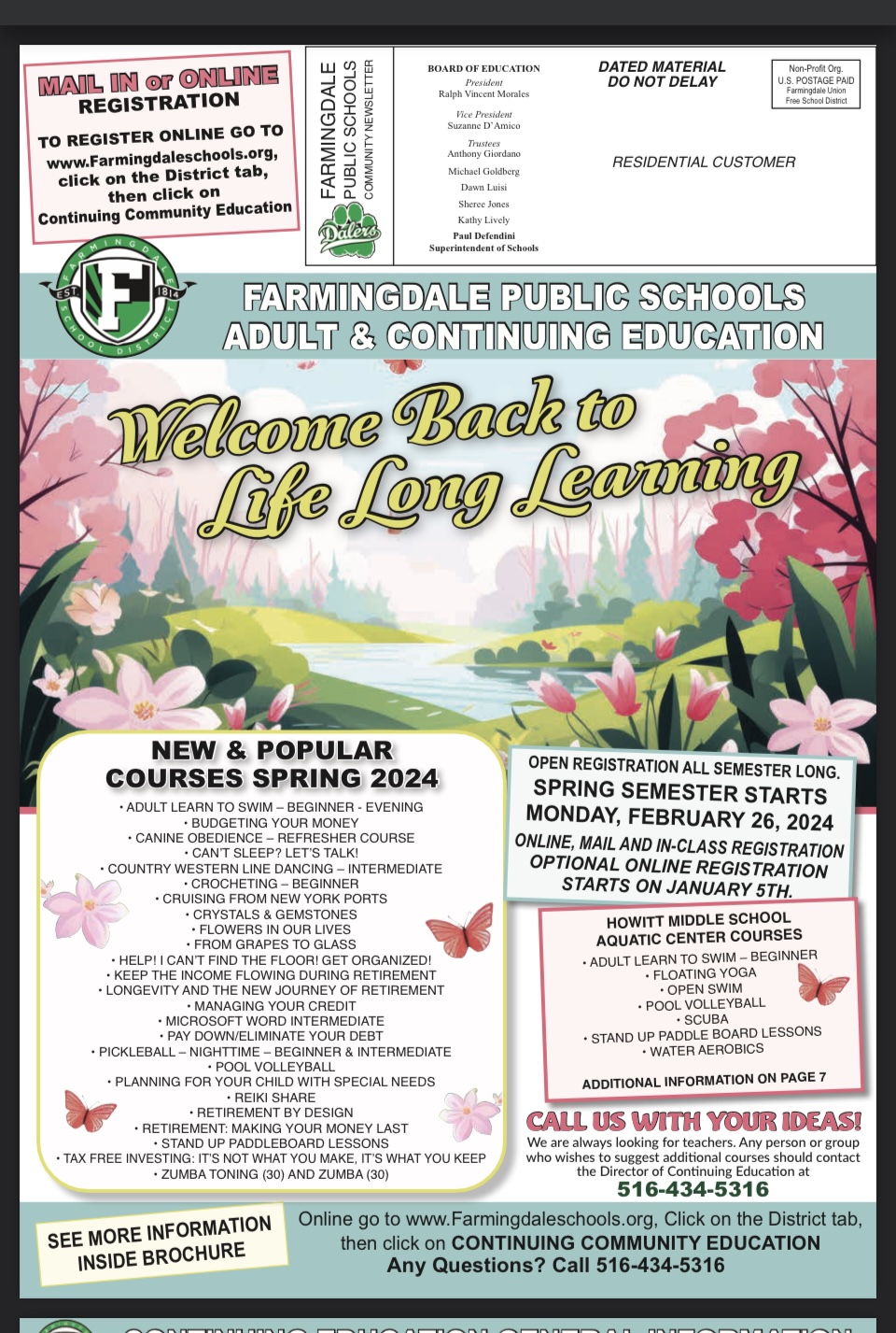 FARMINGDALE BROCHURE: https://www.farmingdaleschools.org/district/continuing_education
