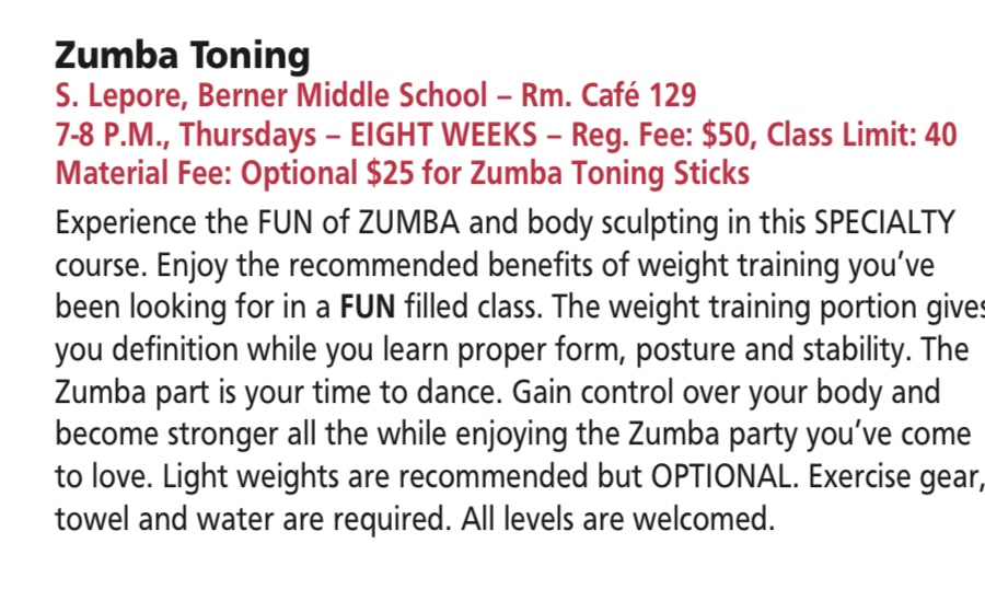 FARMINGDALE 30/30 ZUMBA TONING & ZUMBA SIGN UP LINK (GO TO PAGE 4): https://campscui.active.com/orgs/FarmingdaleUnionFreeSchoolDistrict22?orglink=camps-registration&e4q=9cfe2b09-2ff6-4097-8359-5b8bce68ac64&e4p=e239c499-9e91-4b8f-8920-ab9b349937db&e4ts=1706147297&e4c=active&e4e=snlvcmpscui00001load&e4rt=Safetynet&e4h=4281d7a7813bb61dd2b6bb4cdf8c5aa0#/selectSessions/3425432