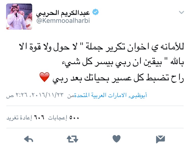 فأن تملك قلبًا طيبًا فهذا يكفيك لتعيش مرتاح الضمير باختصار هذا هو النجم عبدالكريم الحربي