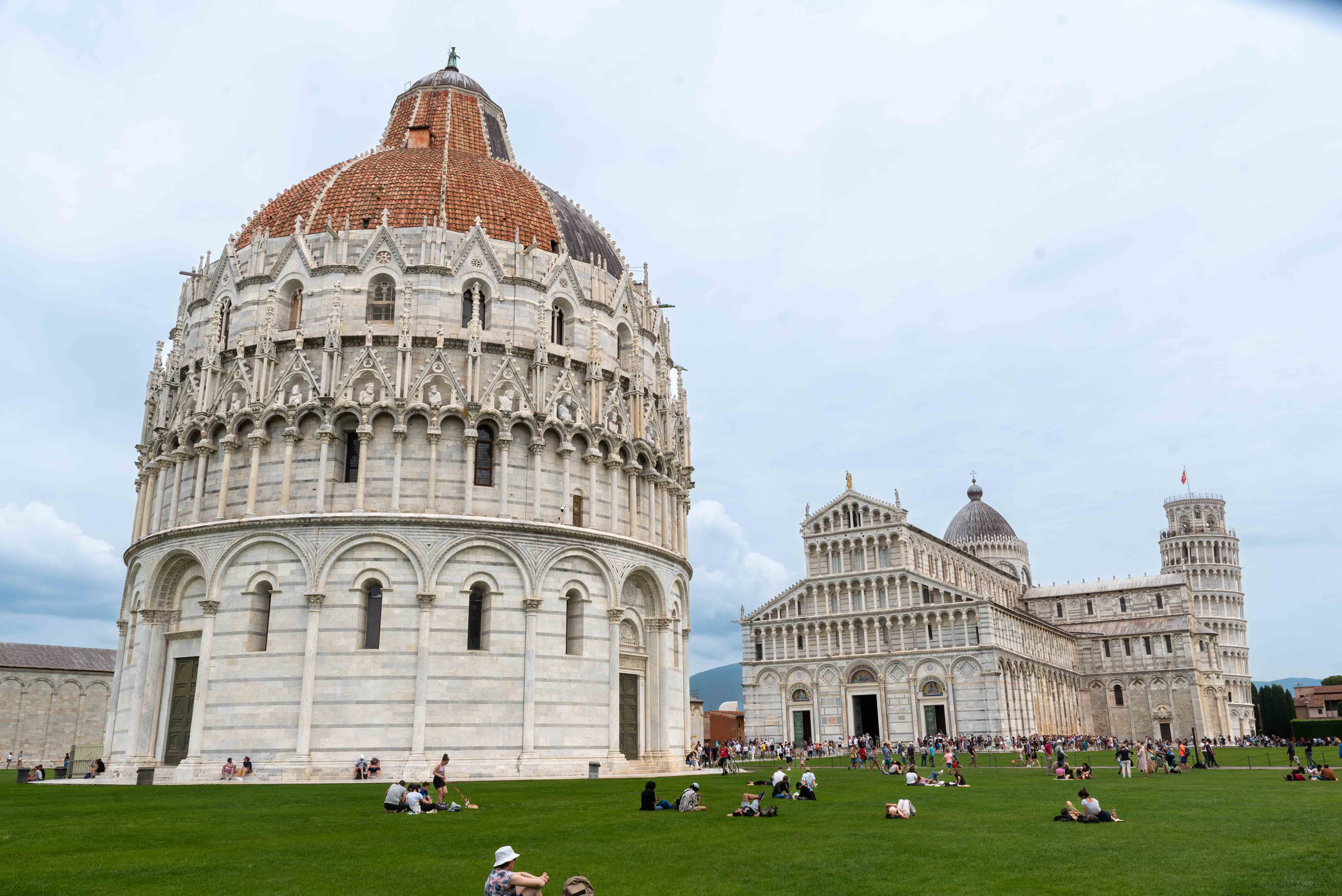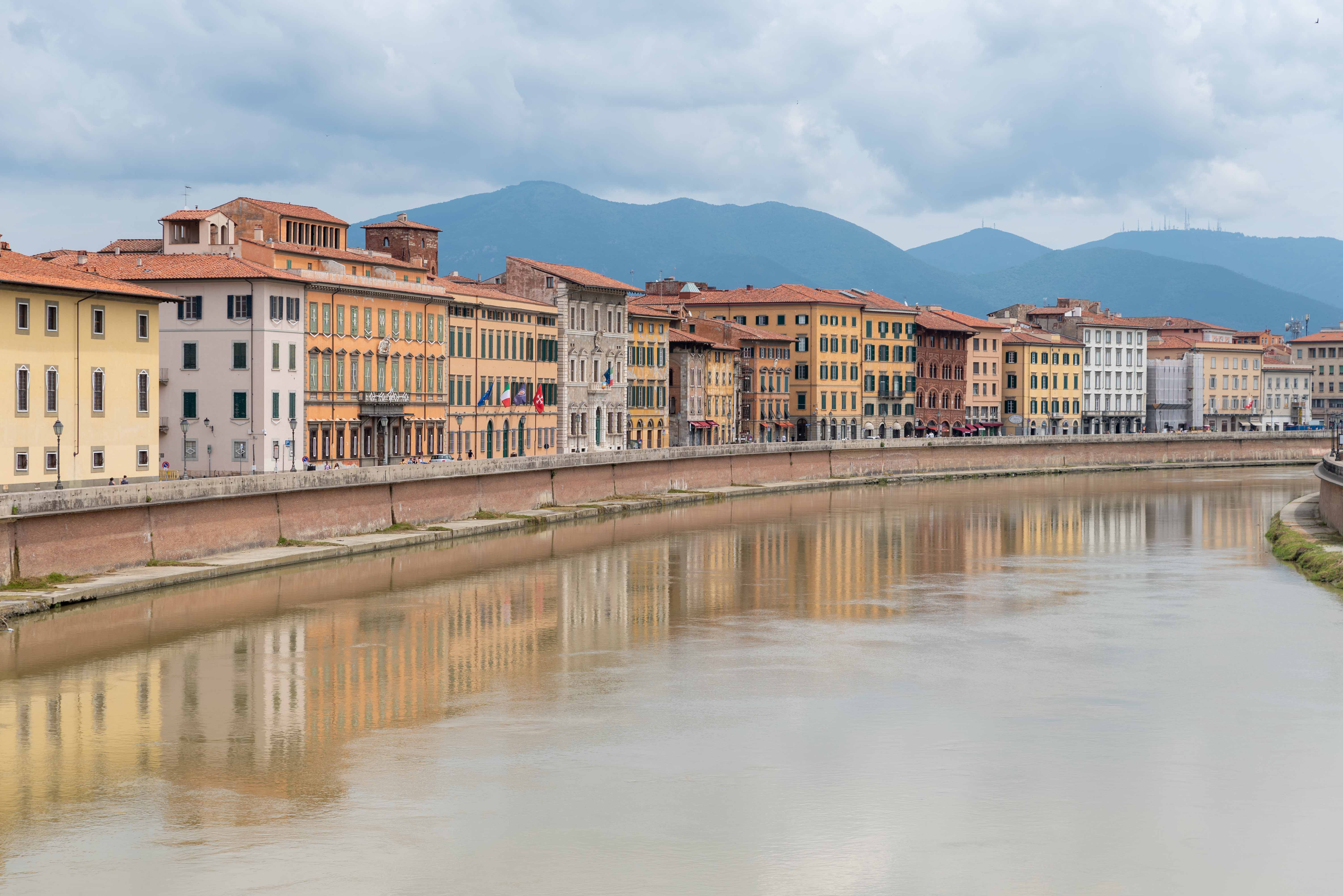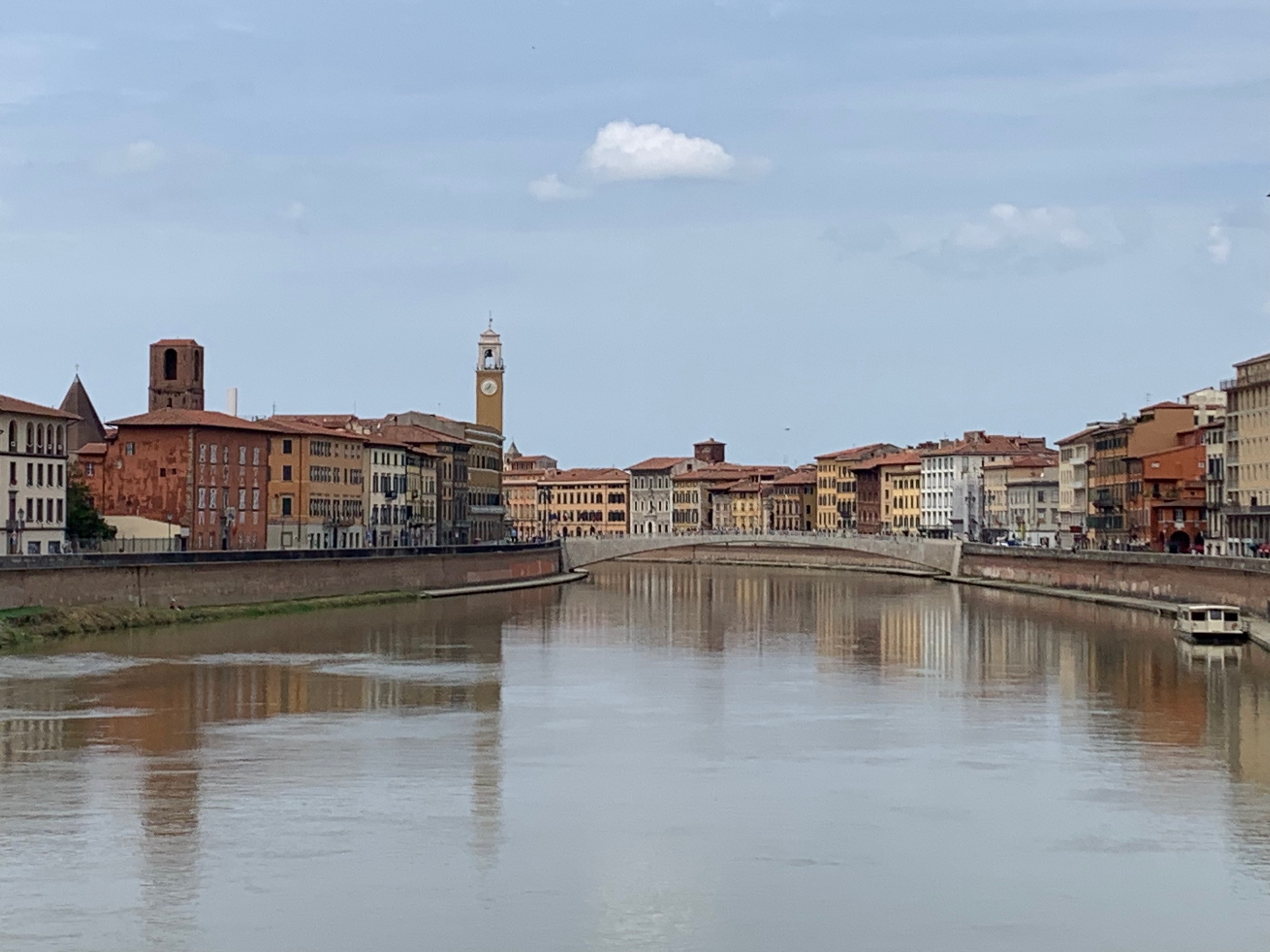Vandaag staat Pisa op het programma. We vinden een plek op de camperplaats en we stappen op de fiets. Eerder hebben we de toren en de duomo al gezien maar zijn we niet Pisa in geweest. Het heeft ergens wat weg van Florence. Het water in de rivier ziet er troebel uit. Ook hier een drukte van belang. Hoezo voorseizoen? Het is wat bewolkt weer. Af en toe een druppel en in de verte onweer.