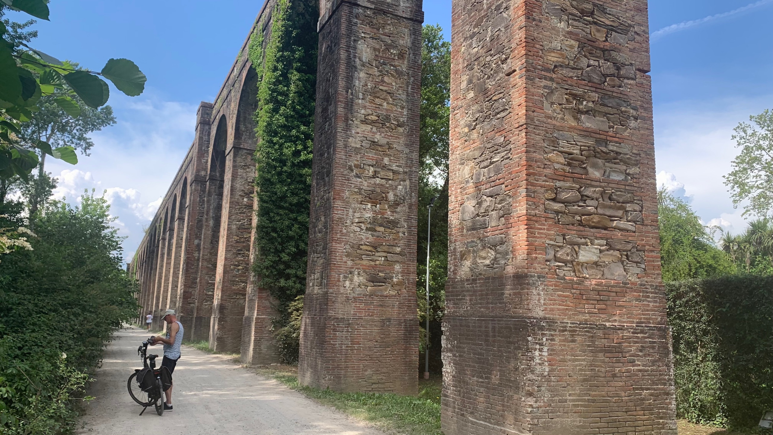 Vanaf Levanto rijden we naar Lucca. Een plek van Agricamper. We hebben hier uitzicht op get aquaduct dat helemaal naar Lucca doorloopt.