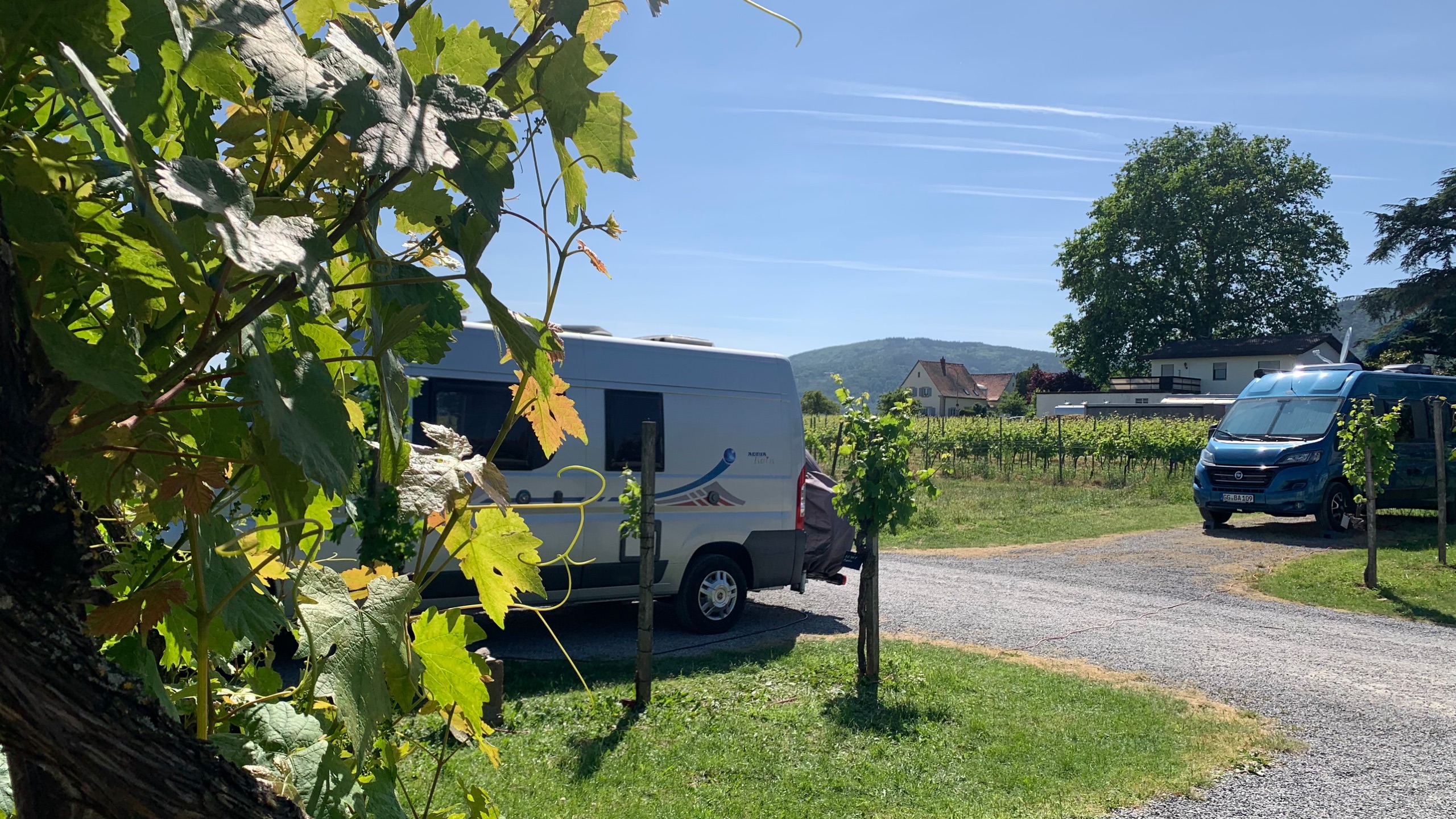 We vertrekken kort na 9 uur van huis. Het is rustig op de weg en dat is prettig rijden. Tegen vier uur stoppen we op CP Weingut Stefan Meyer. Een mooi plekje en weer bij de druivenranken. 😋