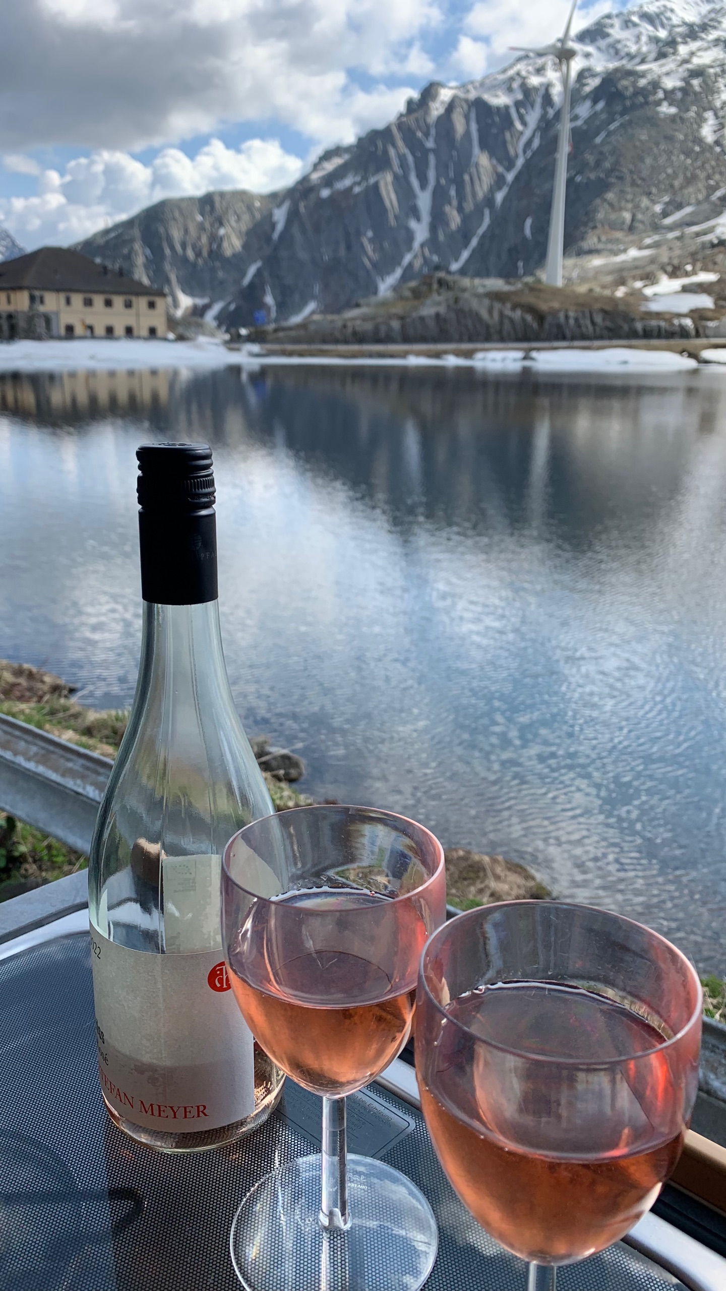 Na een rustige nacht vertrekken we richting Zwitserland. Aan het begin van de middag rijden we de Gotthardpas op. Hier parkeren we de camper om te overnachten. Mooi plekje en de zon schijnt vrolijk. Prachtig uitzicht 🏔️
