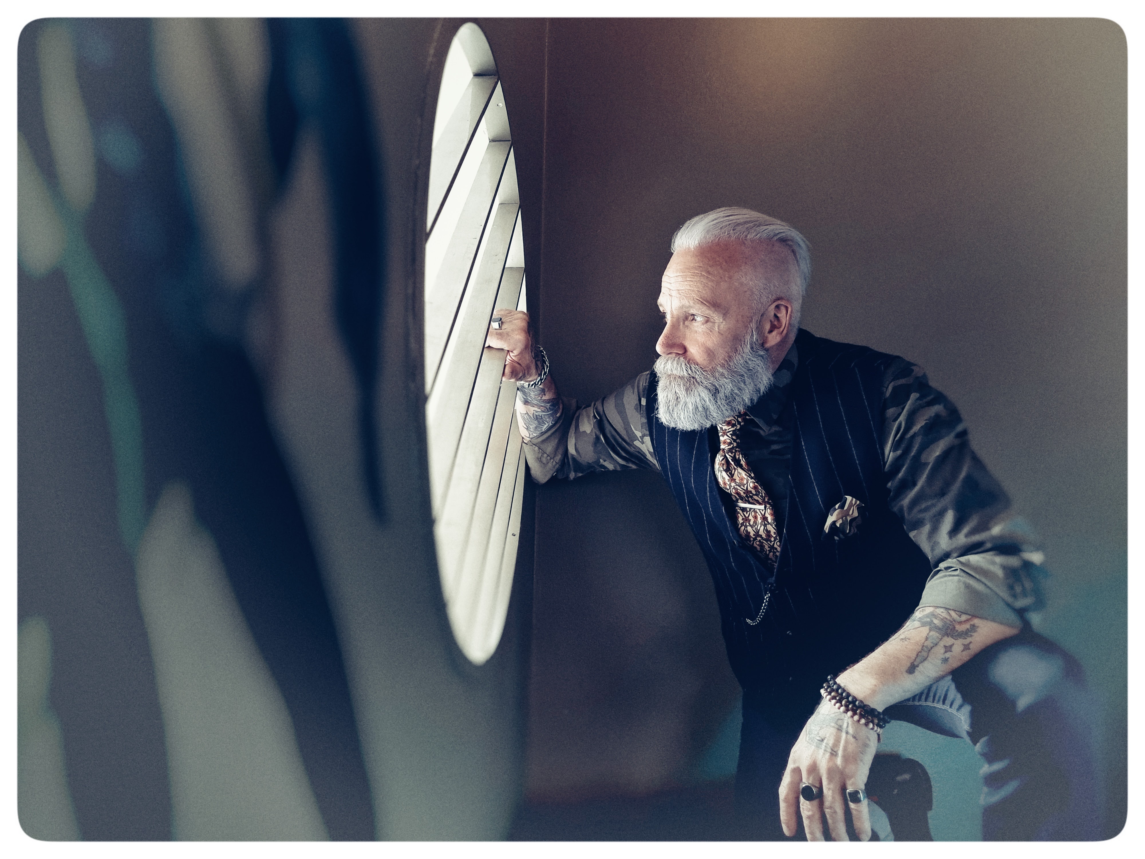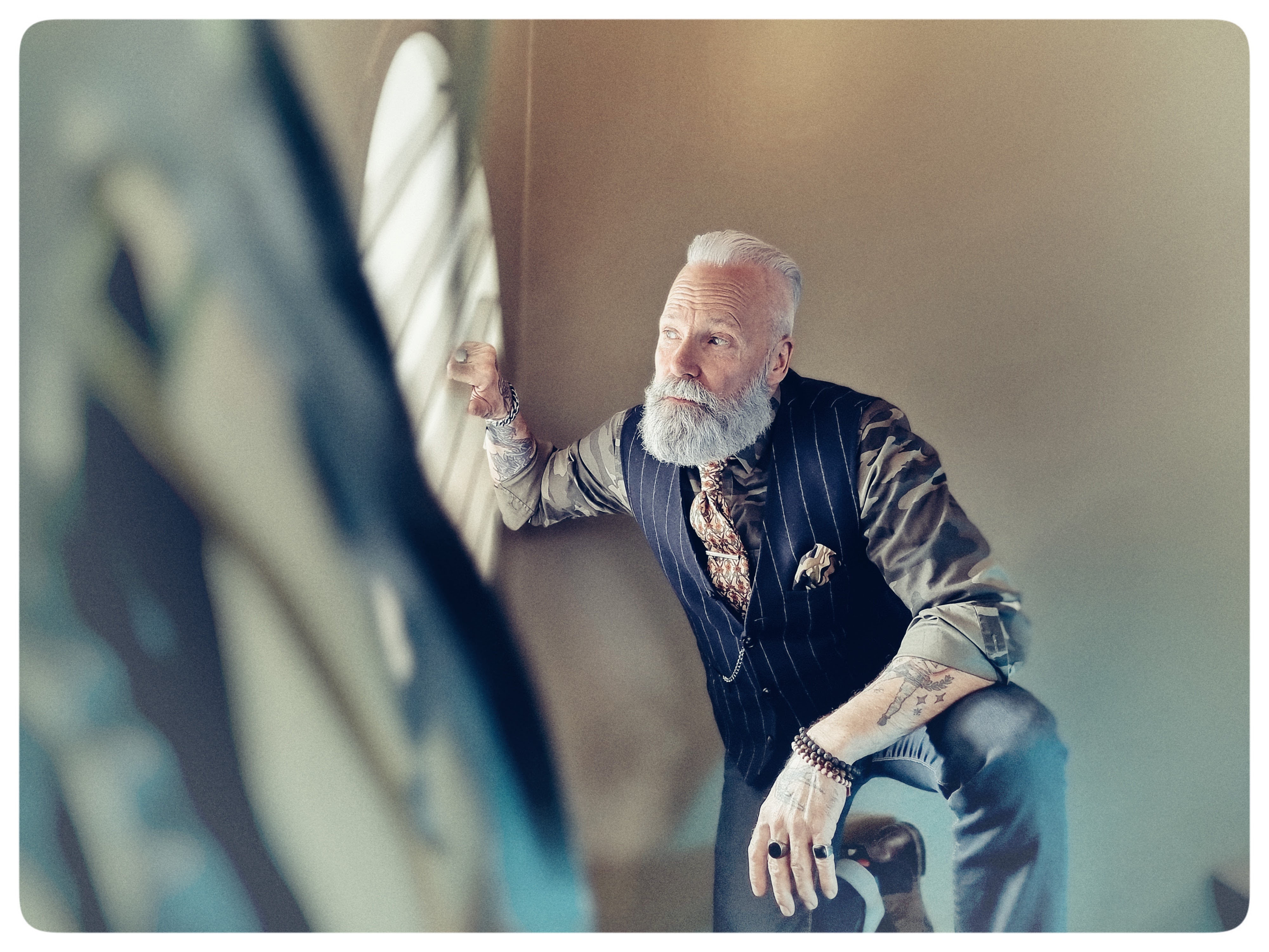 Måske du har oplevet Geir Sveinsson i gadebilledet i København — senest har han nemlig prydet en outdoor-kampagne for det gennemdesignede Amager Center, hvor han er i gang med at parkere sin Vespa-scooter.