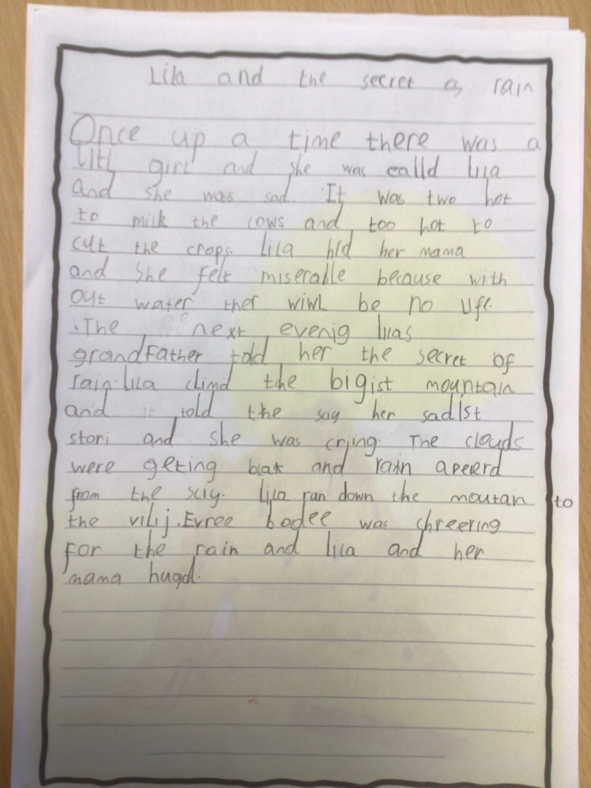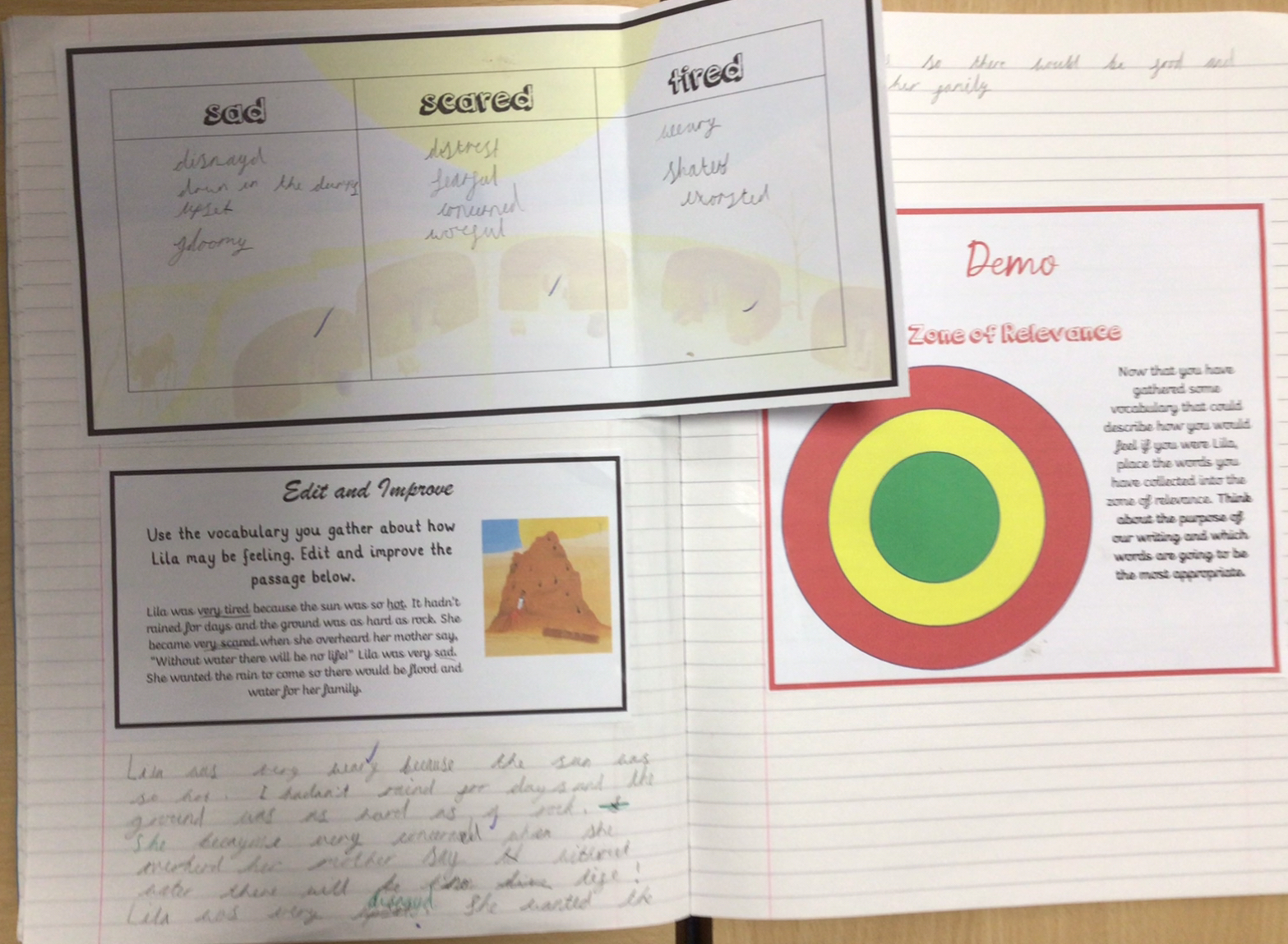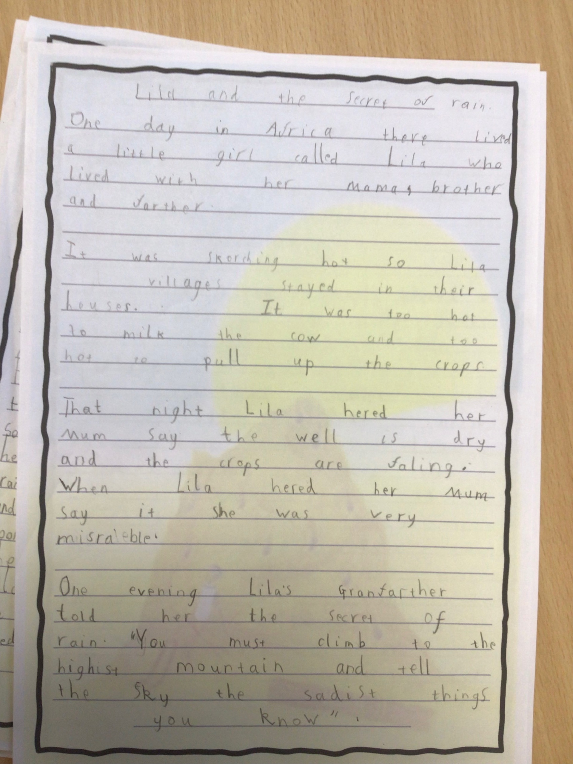 We up leveled our work with ambitious vocabulary and used conjunctions, adverbials, suffixes and verbs to extend our writing and make it more interesting.