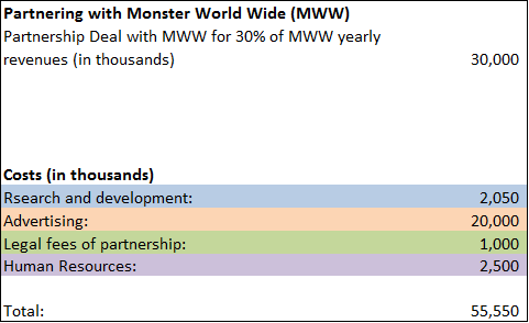 - Increase Marketing efforts to publicize new hiring platform on Ebay sponsored by Monster through social media and other advertising