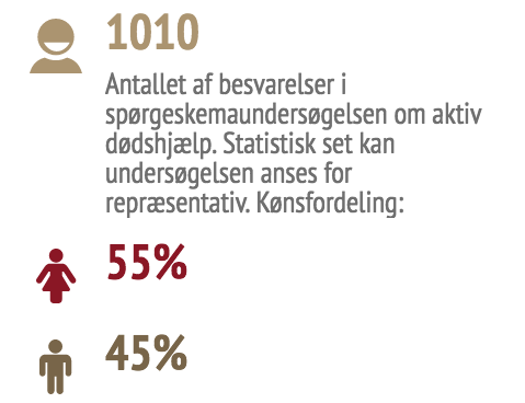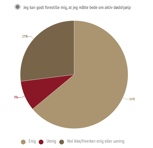 Selvom om der er stor enighed hos politikerne om, at aktiv dødshjælp ikke skal lovliggøres, er størstedelen af danskerne for at aktiv dødshjælp skal lovliggøres. Etik.dk har lavet en undersøgelse med 1010 deltagene om danskernes meninger, det vil vi nu vise med grafik herunder.