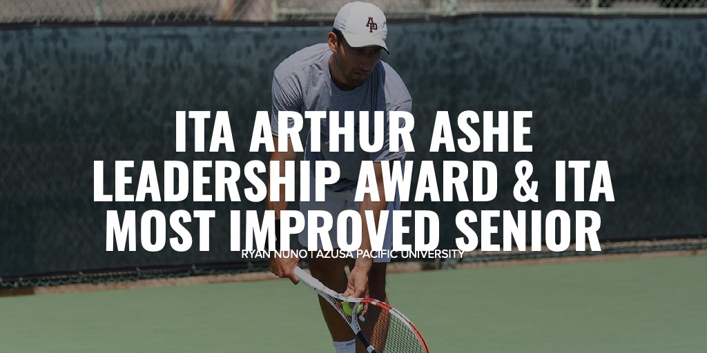 Ryan Nuno from Azusa Pacific University has been named the 2022 ITA Arthur Ashe Leadership & Sportsmanship and ITA Most Improved Senior Award winner.