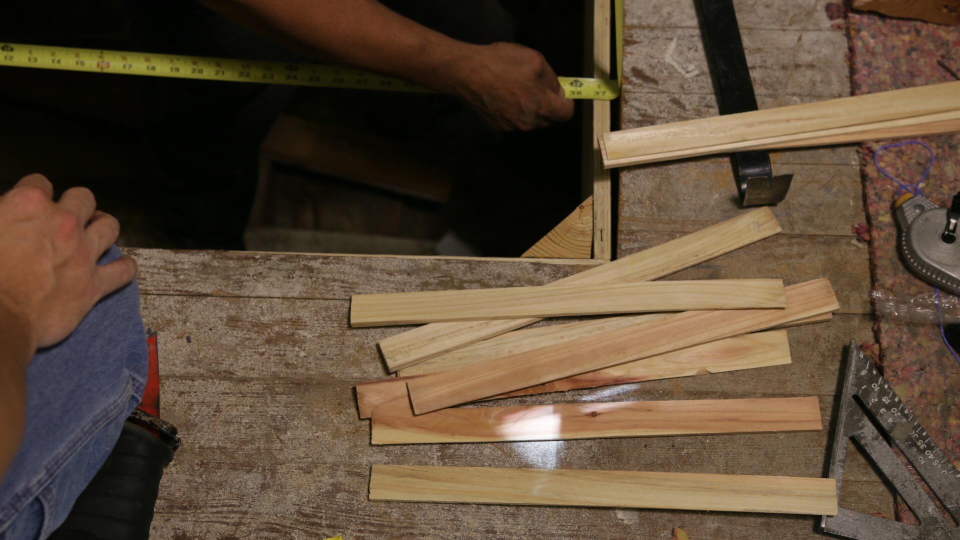 Insert the wood shims to get exact measurements.