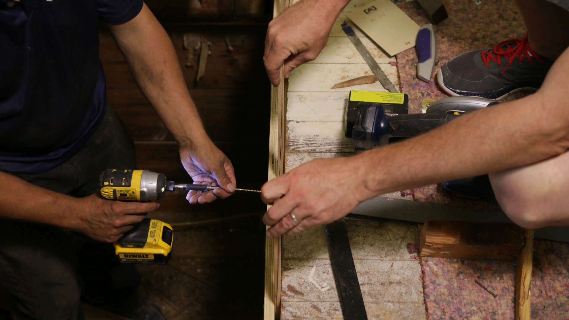 Below, heavy plastic is used to cover the floor and catch debris.