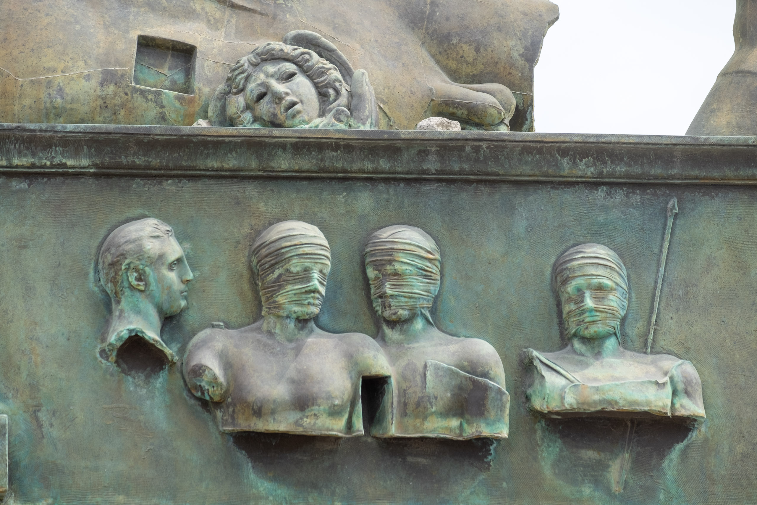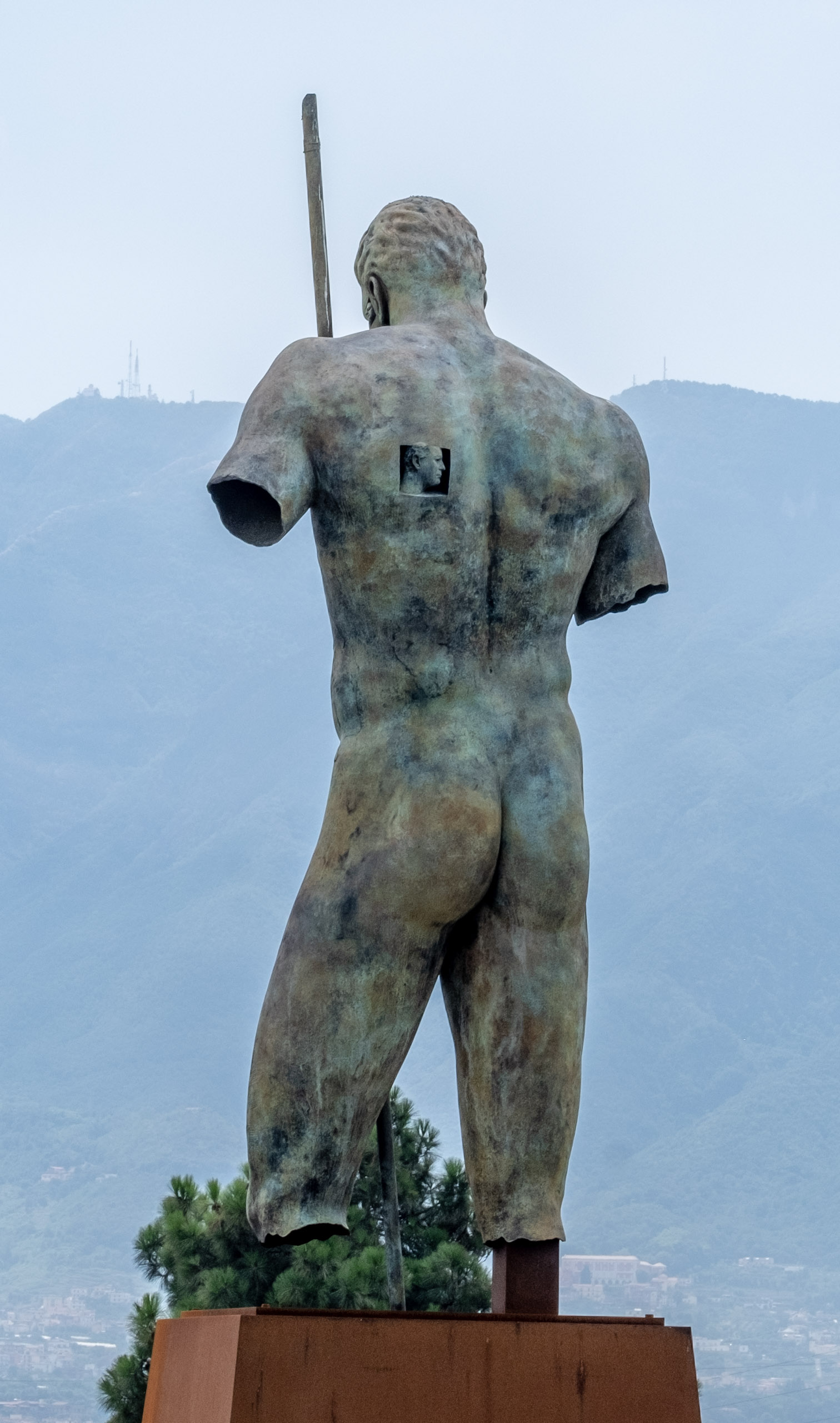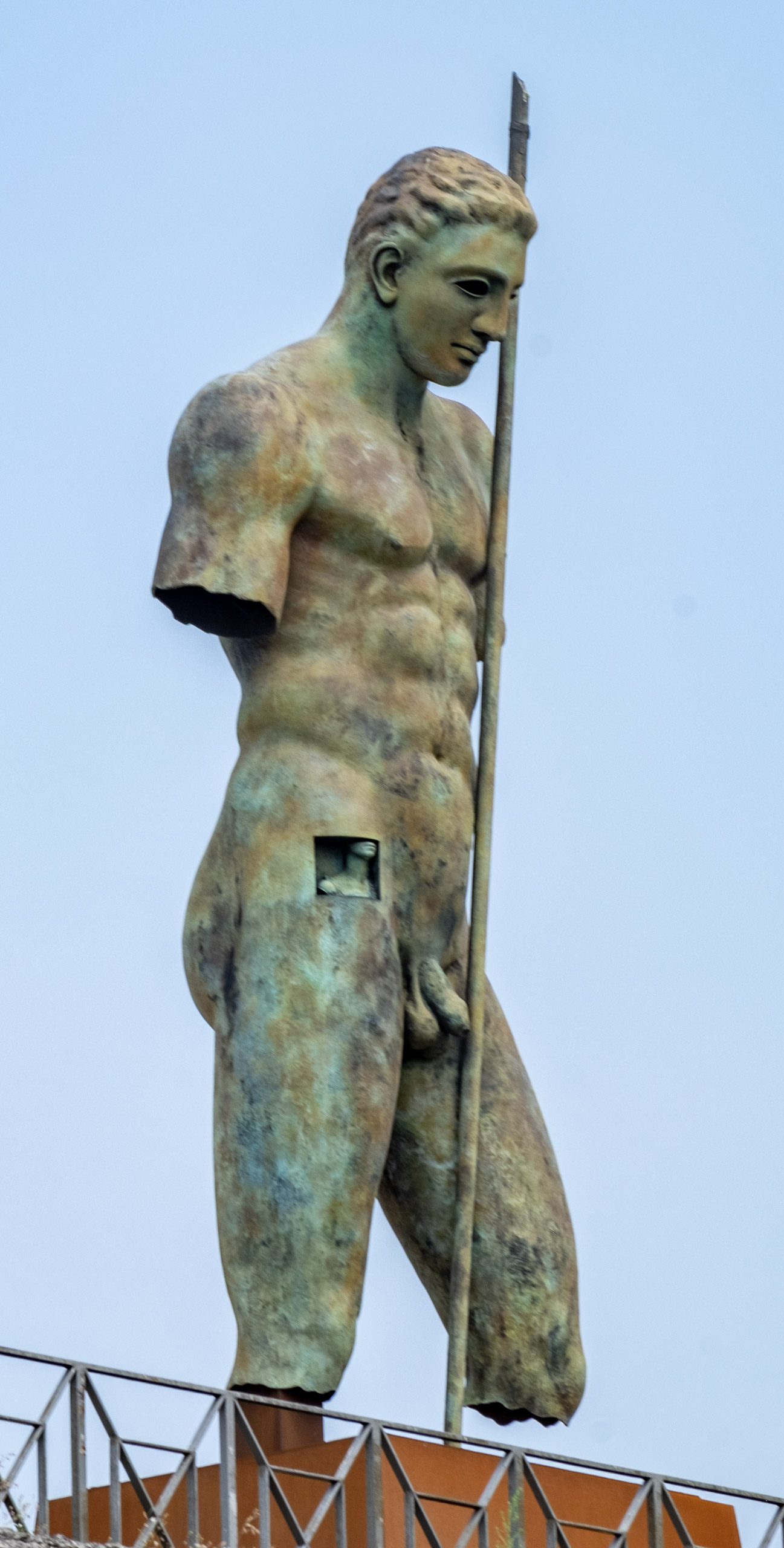 This statue stood watch over the exit, and I was taken by this small and strange detail in the centurion’s “right pocket.” Can you see it?