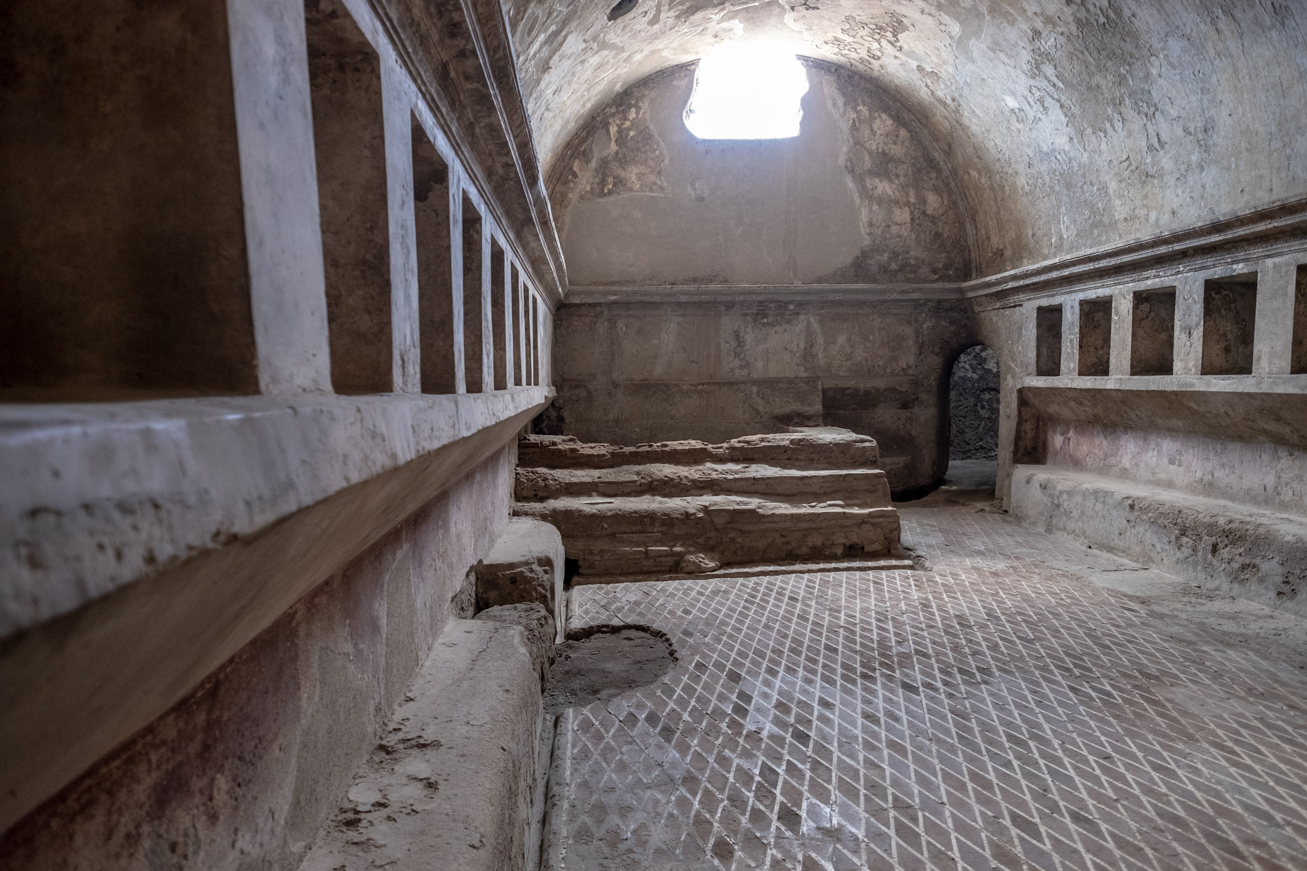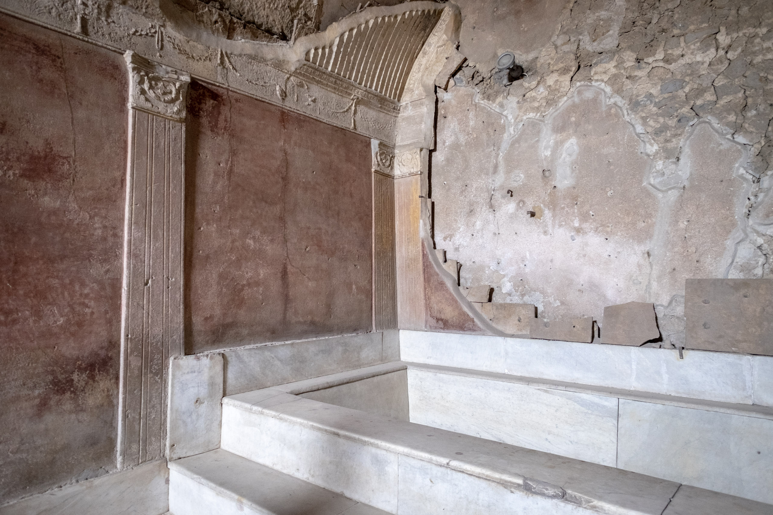 The bath houses - complete with locker spaces and remarkably sophisticated drainage and water systems. Except for that lead pipe part . . .