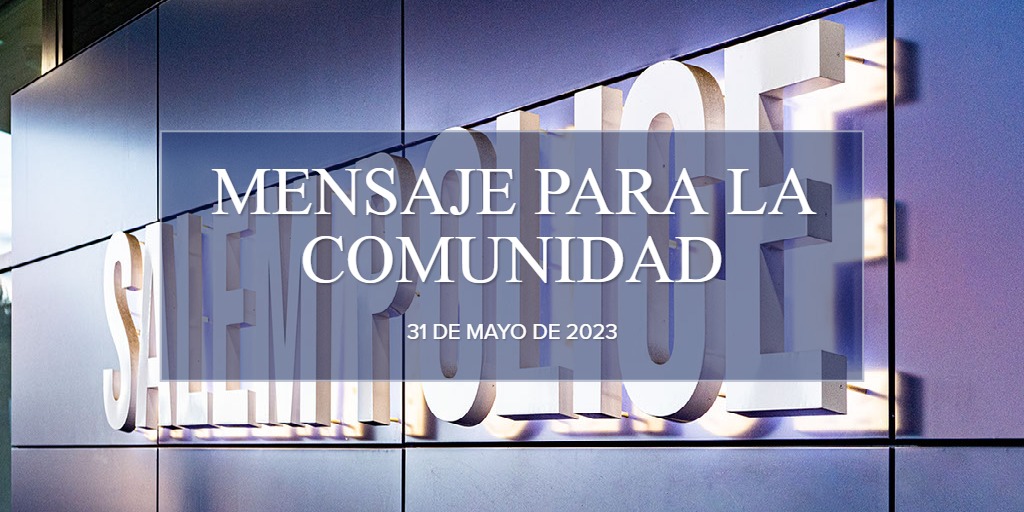 Anoche, 30 de mayo de 2023, el Departamento de Policía de Salem recibió llamadas de residentes preocupados con respecto a un mensaje de redes sociales que amenazaba la seguridad del campus de la escuela intermedia Stephens hoy, 31 de mayo.