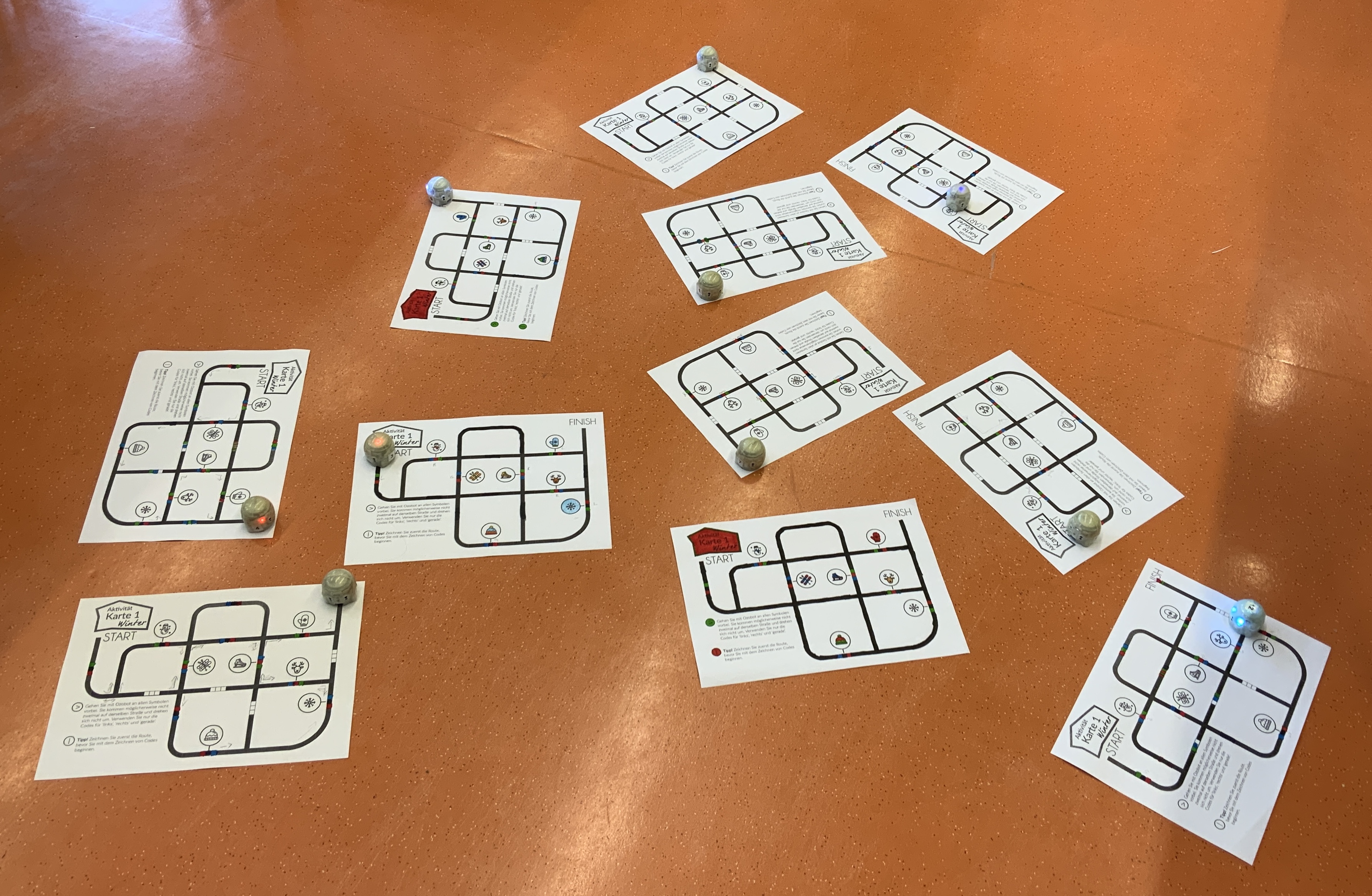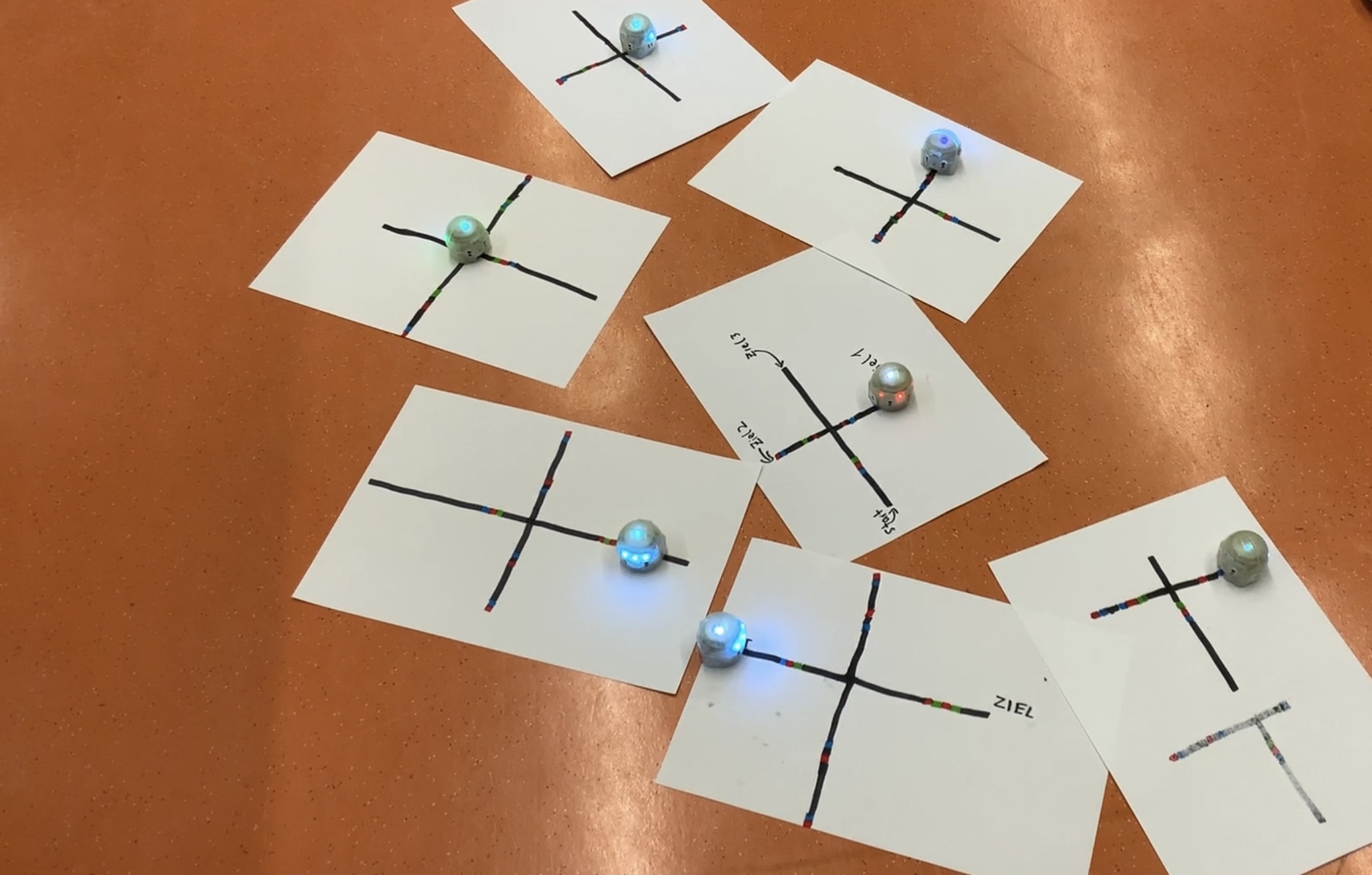 Der Ozobot als Fahrradfahrer, als Autofahrer und als Fußgänger