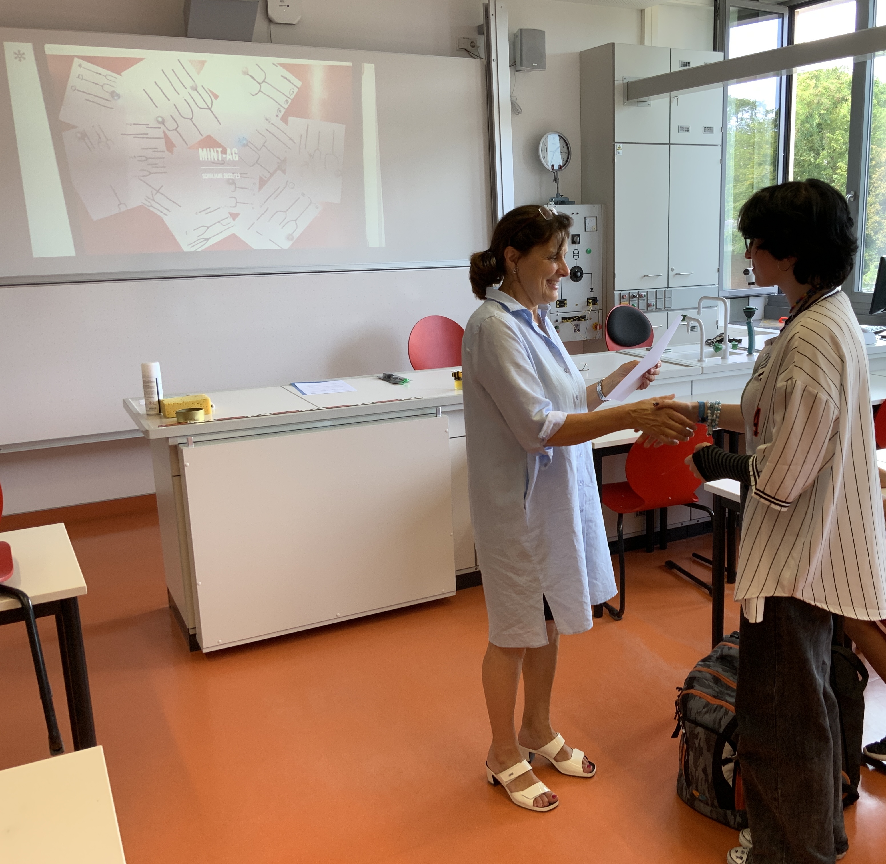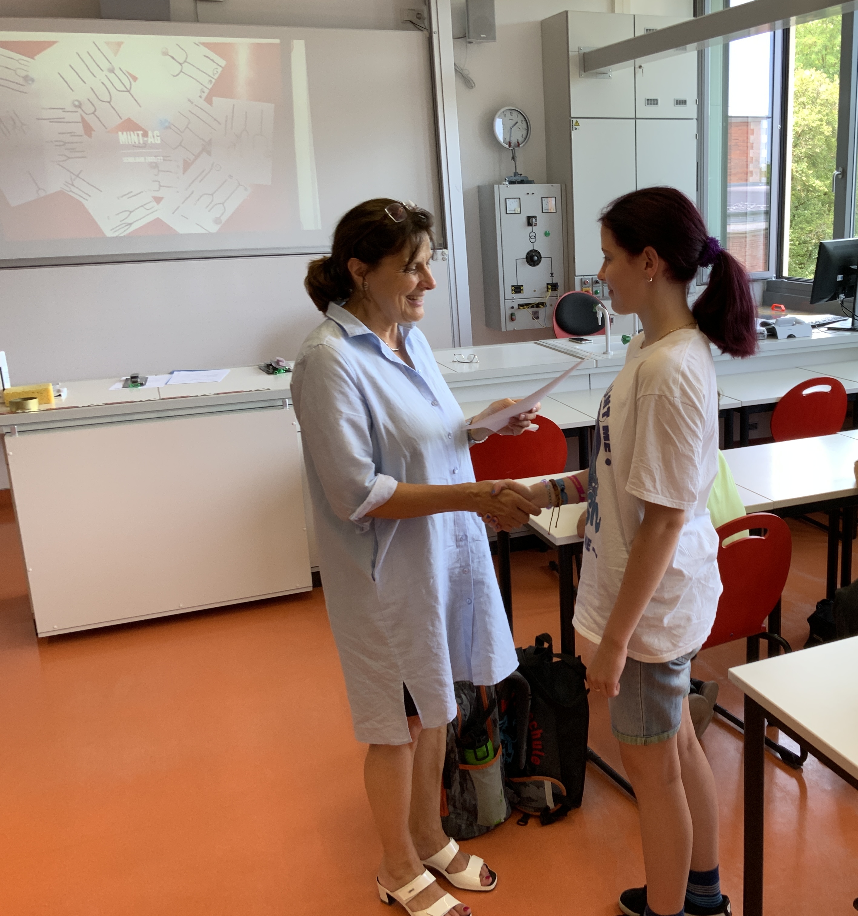 Am 18.07.2023 verabschiedeten wir sowohl die MINT-TUTOREN, als auch unsere AZUBI-MINT-TUTOREN. Frau Mödl, unsere Schulleiterin überreichte die Urkunden.