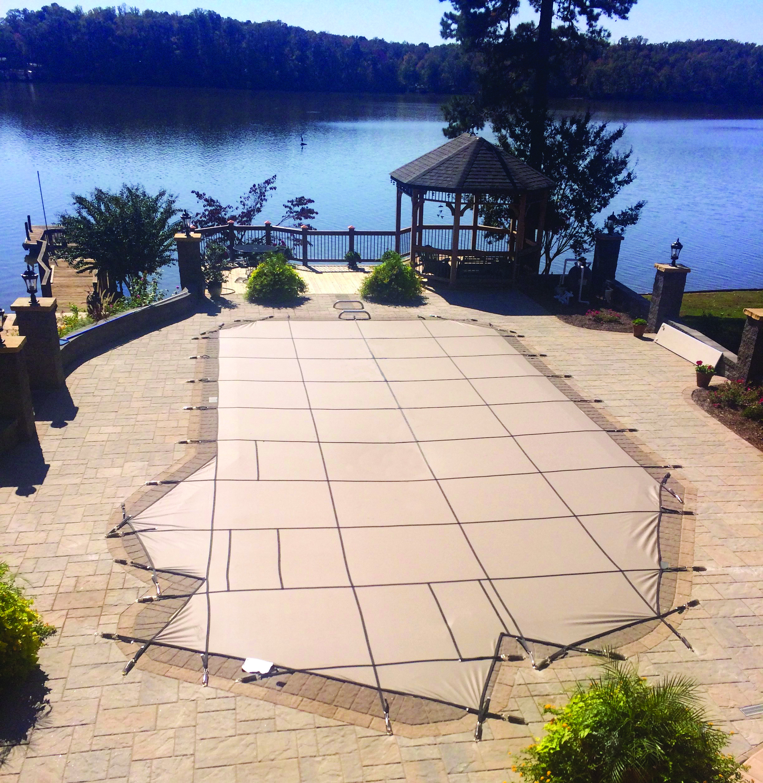 All McEwen Safety Covers are impressively strong. According to the American Society for Testing and Materials, a safety cover must be able to hold a weight of 485 lbs, cover any gaps that a child or pet could squeeze through, and remove standing water. All McEwen Safety Covers meet or exceed the Performance Standards for Safety Covers as outlined in ASTM Designation F 1346-91. The sturdy brass and stainless steel anchoring system keeps the cover secure and the tamper-proof design of our product ensures that when the cover is on, it stays on.