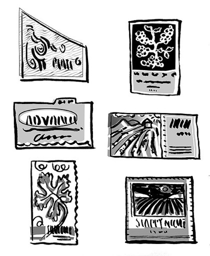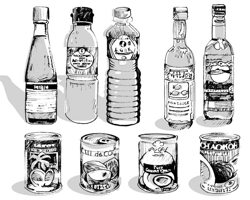 Here are some assorted cookbook illustrations, black-and-white projects, and culinary spot art.