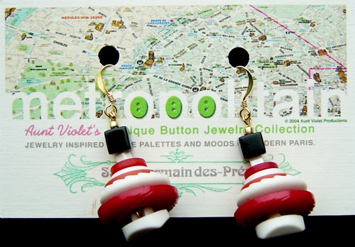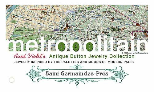 This is a label for my own line of button jewelry, designed to coordinate with the color and style of various arrondissements, and named for their Paris Metro stations.