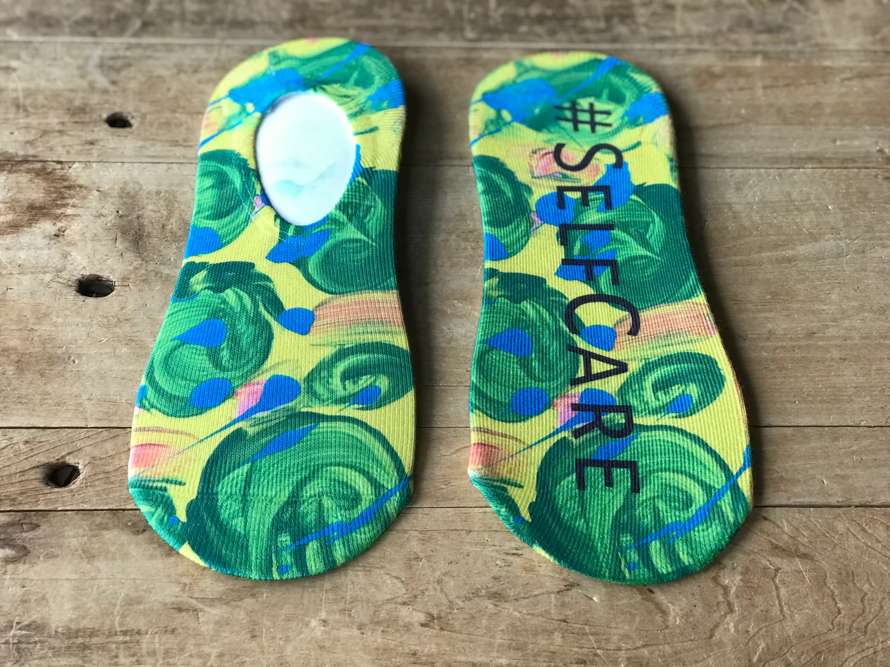 These socks are not just socks, the artwork behind them have a message #SelfLove, #SelfWorth, and #SelfCare. What better way to wear a positive, affirmative, motivational, and inspirational message than on our feet. Our feet take us everywhere, we need our feet to be happy, and this series is another way to carry us throughout our days. So whether you need a pick me up or not, motivation, and positive affirmations fit into our live on the daily.