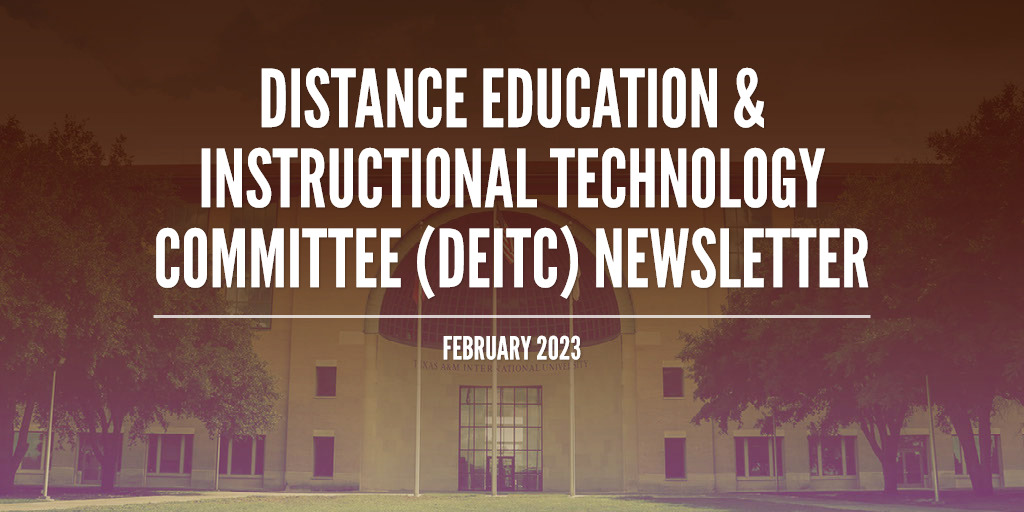 eLearning has set up an AI resource folder in the Faculty Resources course in Blackboard available for all faculty. Dr. Abrego encouraged DEITC members to upload any research they find related to this topic. All faculty are also encouraged to send any information they find useful about AI to the eLearning team to keep all this information handy in one place.