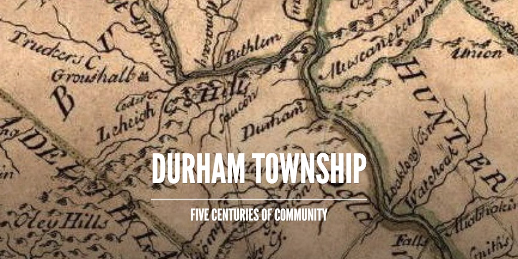 After several failed attempts, finally in 1775, the petition to form Durham Township was approved. The family names on the petition included: Jacob Clymer, Henry Houpt, George Taylor, George Heinline, Wendell Shank, Thomas Craig, Michael Deemer, William Abbott, Francis Wilson, Daniel Stillwell.