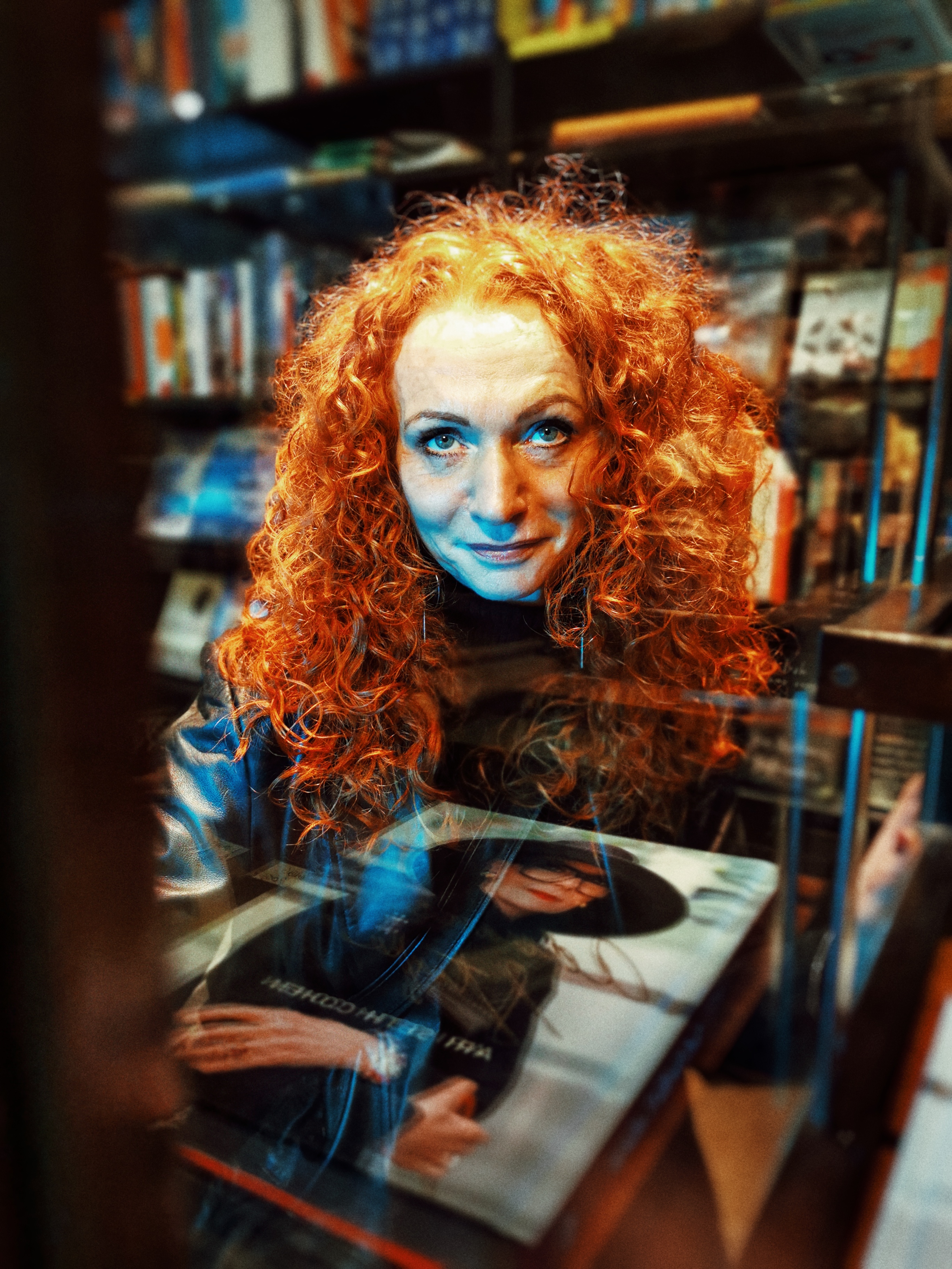 Vi fik vendt forskellige muligheder og fandt frem til hvordan vi kunne peppe hende og dét image op. Resultatet blev nye profilbilleder, der bedre fortæller hendes historie. Billederne fik vi taget i Paludan Antikvariats dybe kælder, der bare siger BØGER!